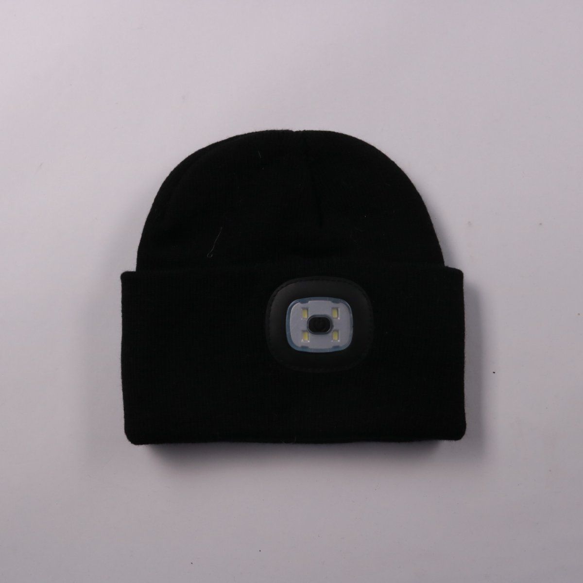Вязаная шапка с встроенным LED-фонариком спереди, подойдёт для прогулок и пробежек в тёмное время суток. Мягкая акриловая ткань хорошо закрывает уши и сохраняет тепло. Практичное преимущество — освещает дорогу без необходимости держать фонарик в руках.