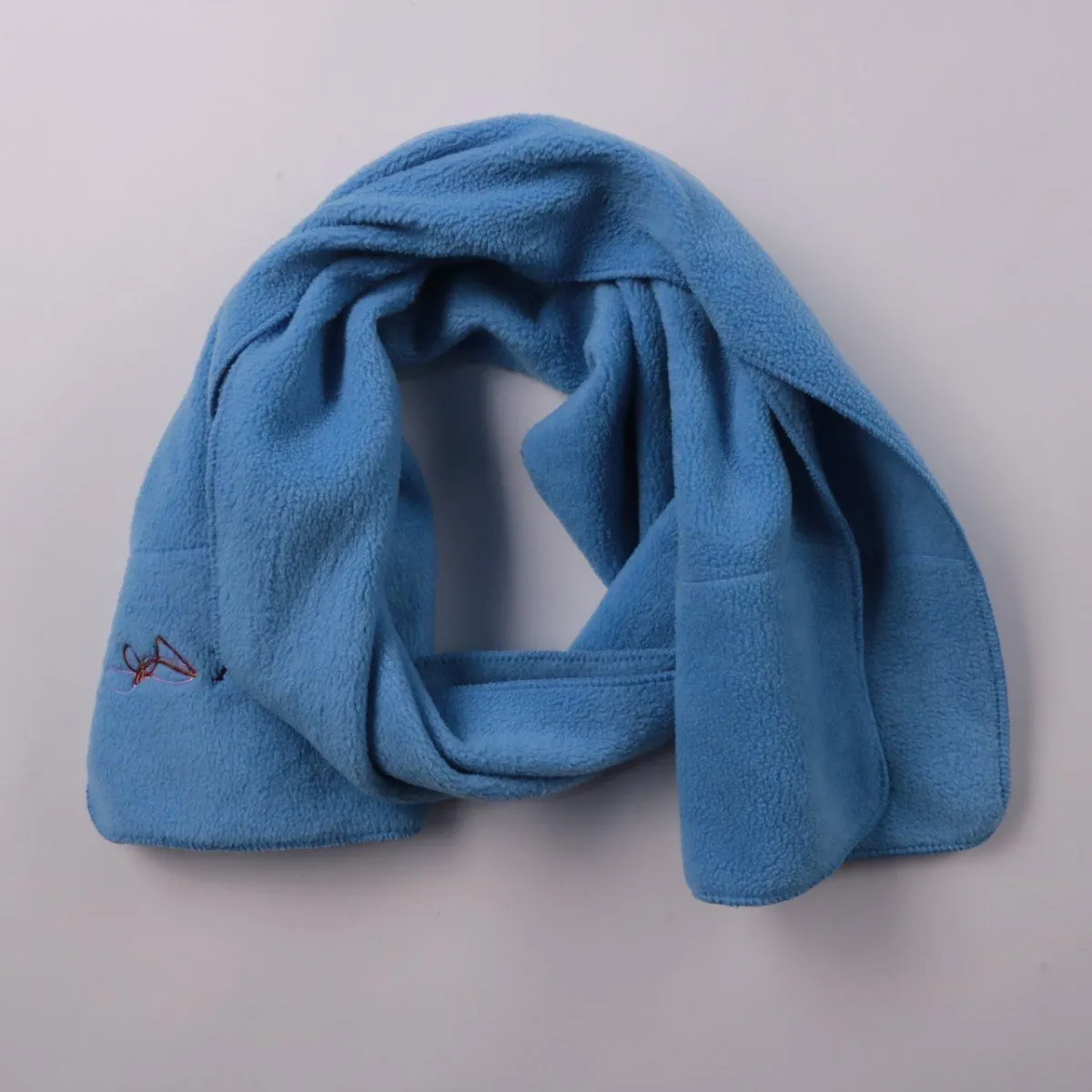 Шарф XOPP из мягкого флисового материала, голубого цвета, с небольшой вышивкой на углу.