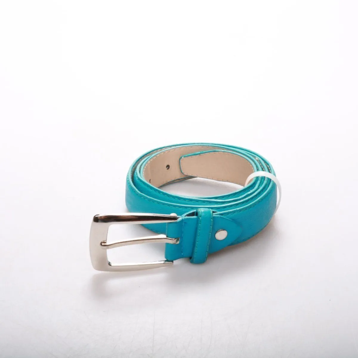 Узкий ремень бирюзового цвета с металлической пряжкой. Подойдёт для джинсов, брюк или платья, чтобы аккуратно подчеркнуть талию и добавить яркий акцент. Практичен тем, что легко регулируется по длине за счёт нескольких отверстий.