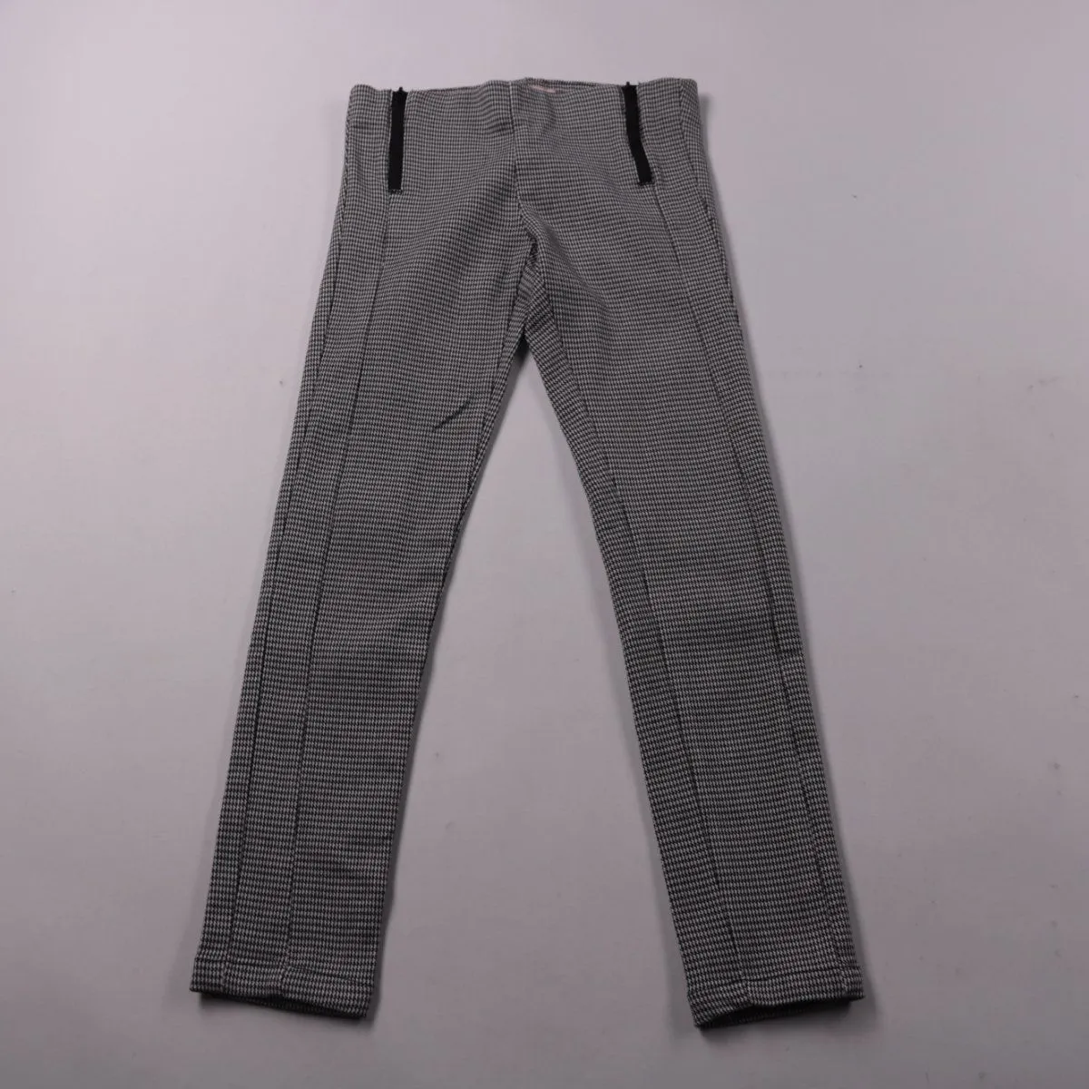 Брюки ONLY для девочки в мелкий узор (чёрно-серый). Подойдут для школы и повседневной носки, хорошо сочетаются с рубашками и свитерами. Эластичная добавка в составе даёт более комфортную посадку.