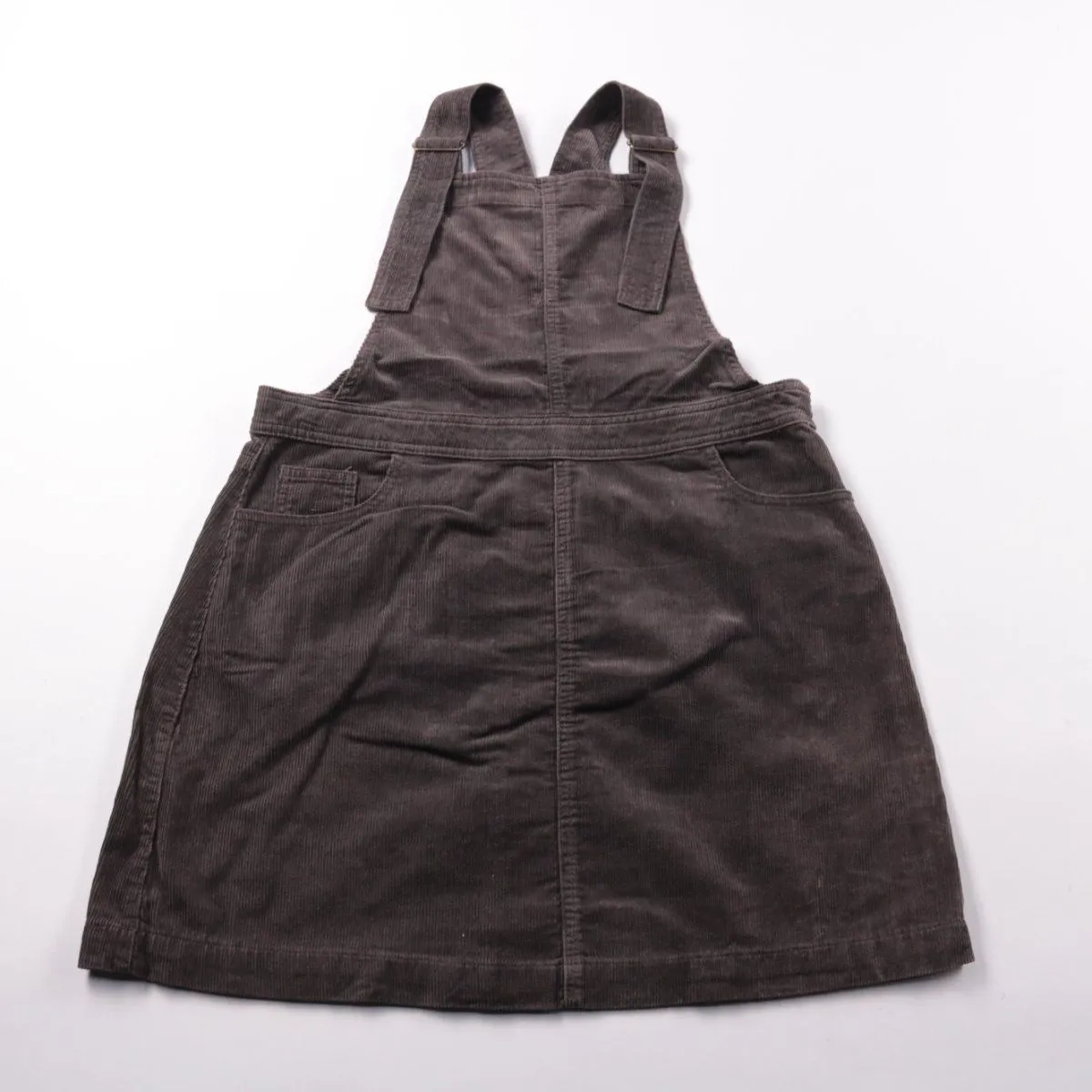 Вельветовое платье-сарафан New Look тёмно-серого цвета, на регулируемых бретелях и с карманами. Подойдёт для школы и прогулок в демисезон — удобно носить с водолазкой или лонгсливом. Плотная ткань практична и меньше мнётся.