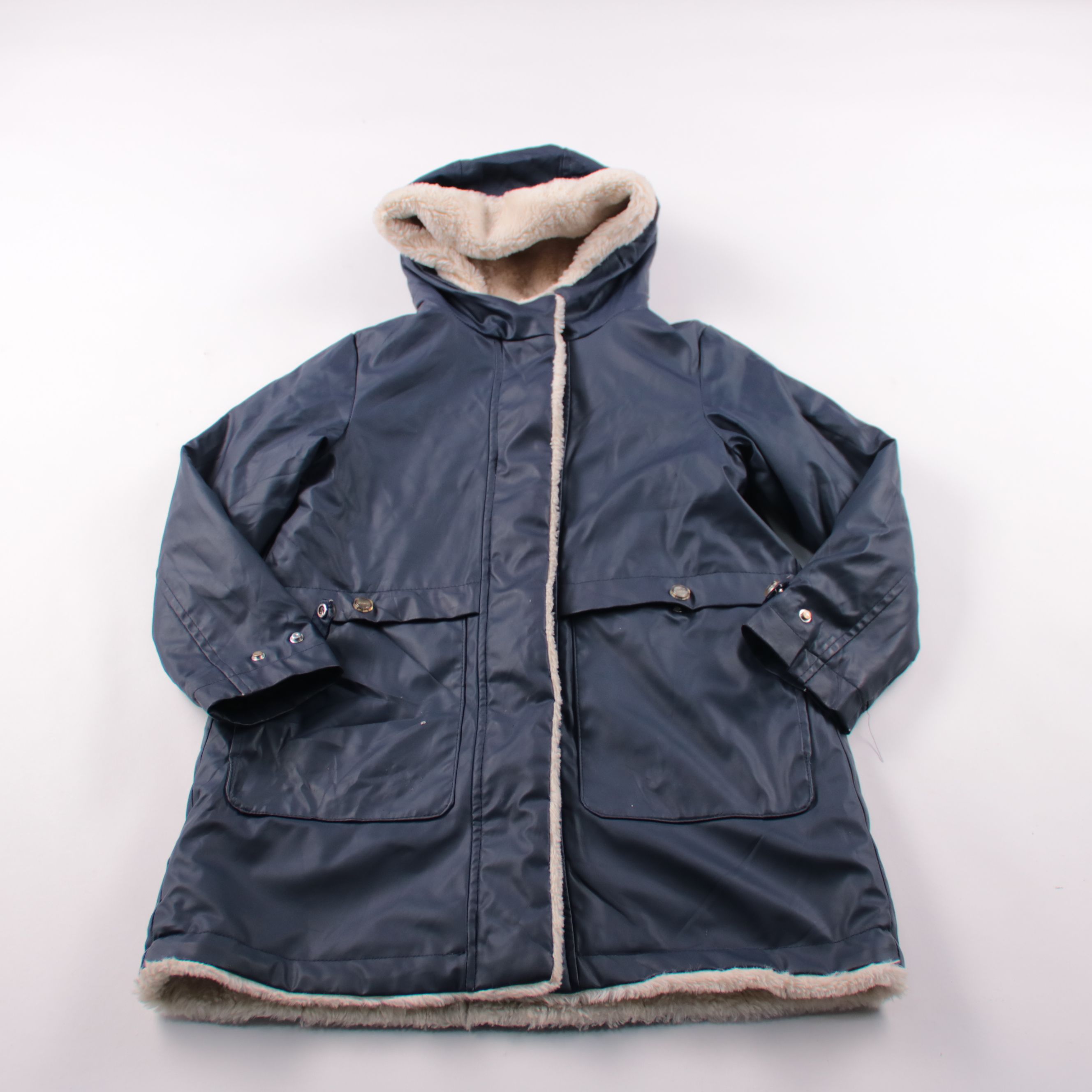 Зимняя куртка Zara Kids тёмно-синего цвета с капюшоном и мягкой меховой подкладкой. Подойдёт для повседневных прогулок в холодную погоду, удобно застёгивается и хорошо защищает от ветра. Верх из полиэстера практичен в уходе и быстро сохнет.