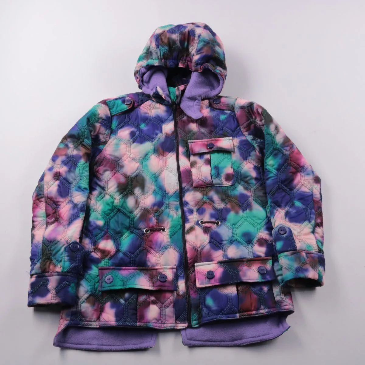 Детская демисезонная куртка с капюшоном, разноцветная, стёганая. Подойдёт для прогулок в прохладную погоду весной и осенью. Практичная: застёгивается на молнию и имеет карманы.