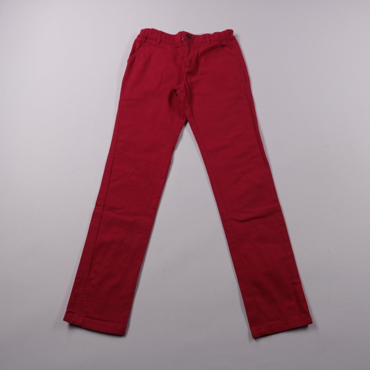 Брюки Carrément Beau красного цвета, прямого кроя с застёжкой на пуговицу и карманами. Подойдут для школы и повседневной носки в тёплое межсезонье. Натуральный хлопок хорошо дышит и комфортен в течение дня.