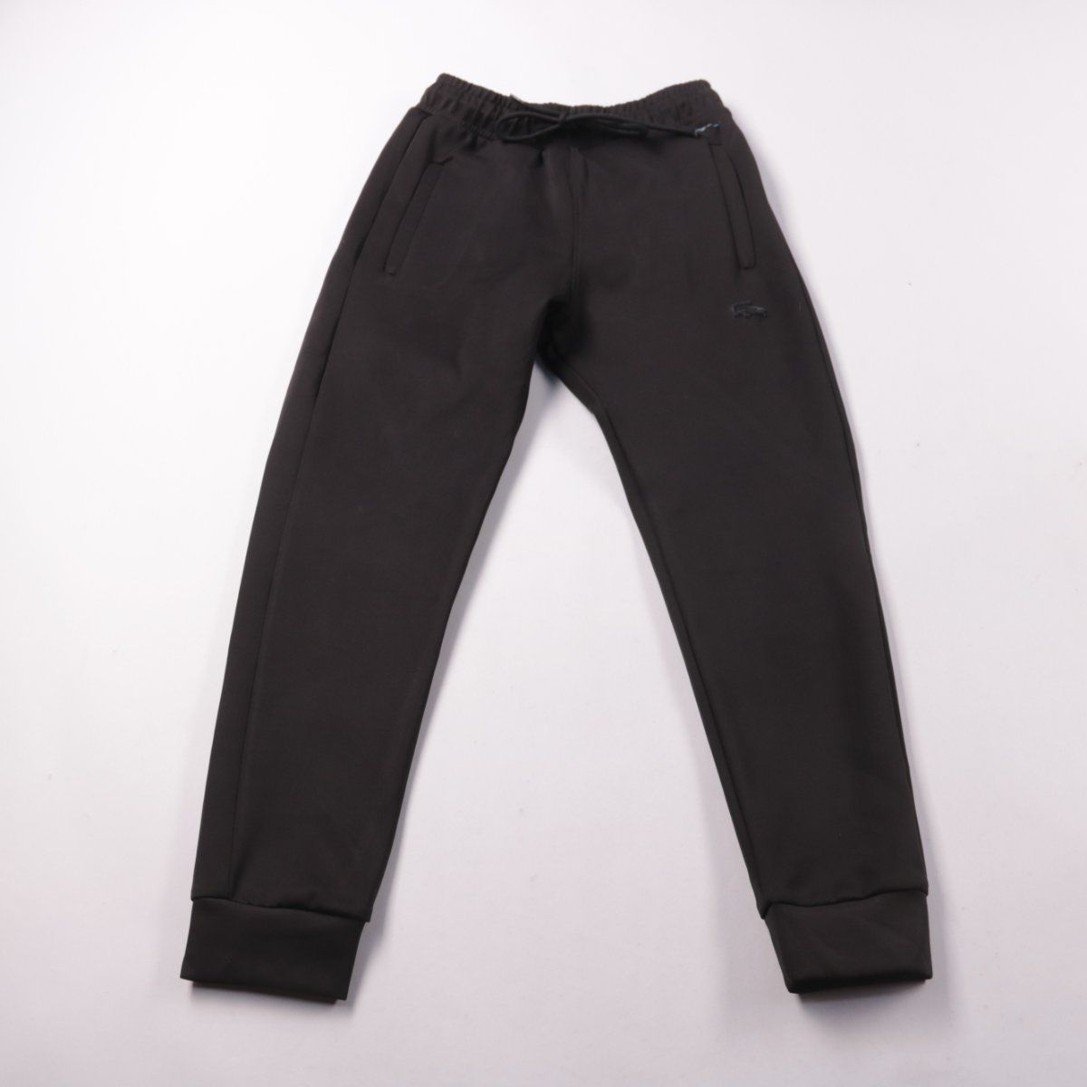Спортивные брюки для мальчика чёрного цвета, с эластичным поясом и шнурком. Подойдут для школы, прогулок и занятий спортом, низ на манжетах. Пояс на резинке удобно регулируется по талии.