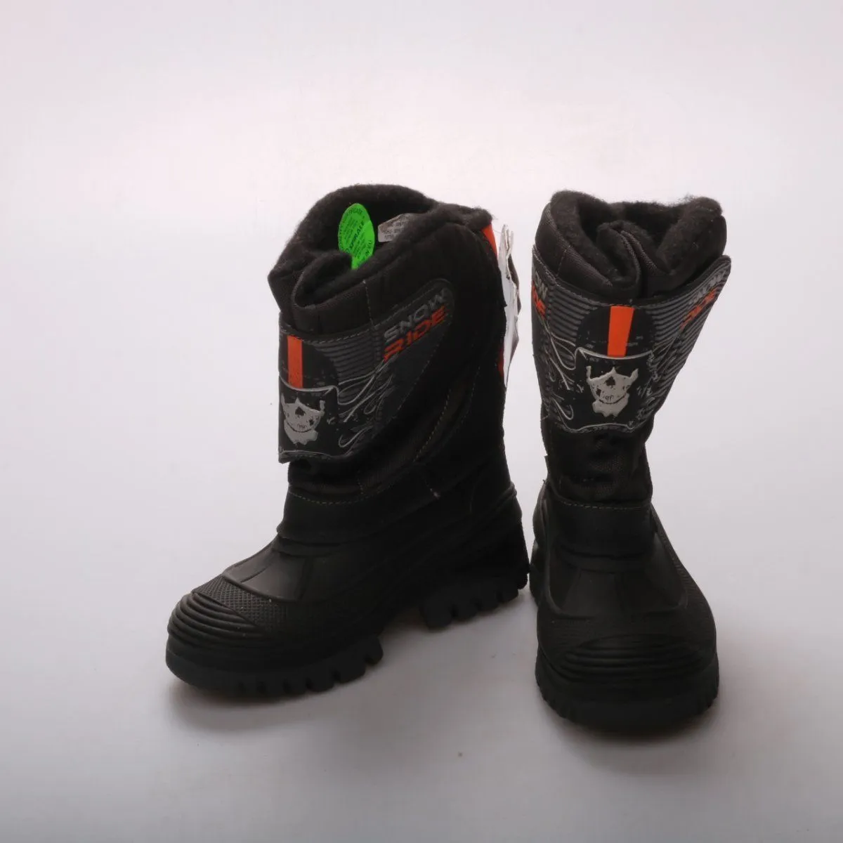 Зимние сапоги Spirale Snow Ride для мальчика, чёрные с оранжевыми вставками и мягким утеплённым верхом. Подойдут для прогулок в снег и слякоть благодаря резиновой нижней части. Глубокий протектор на подошве помогает меньше скользить.