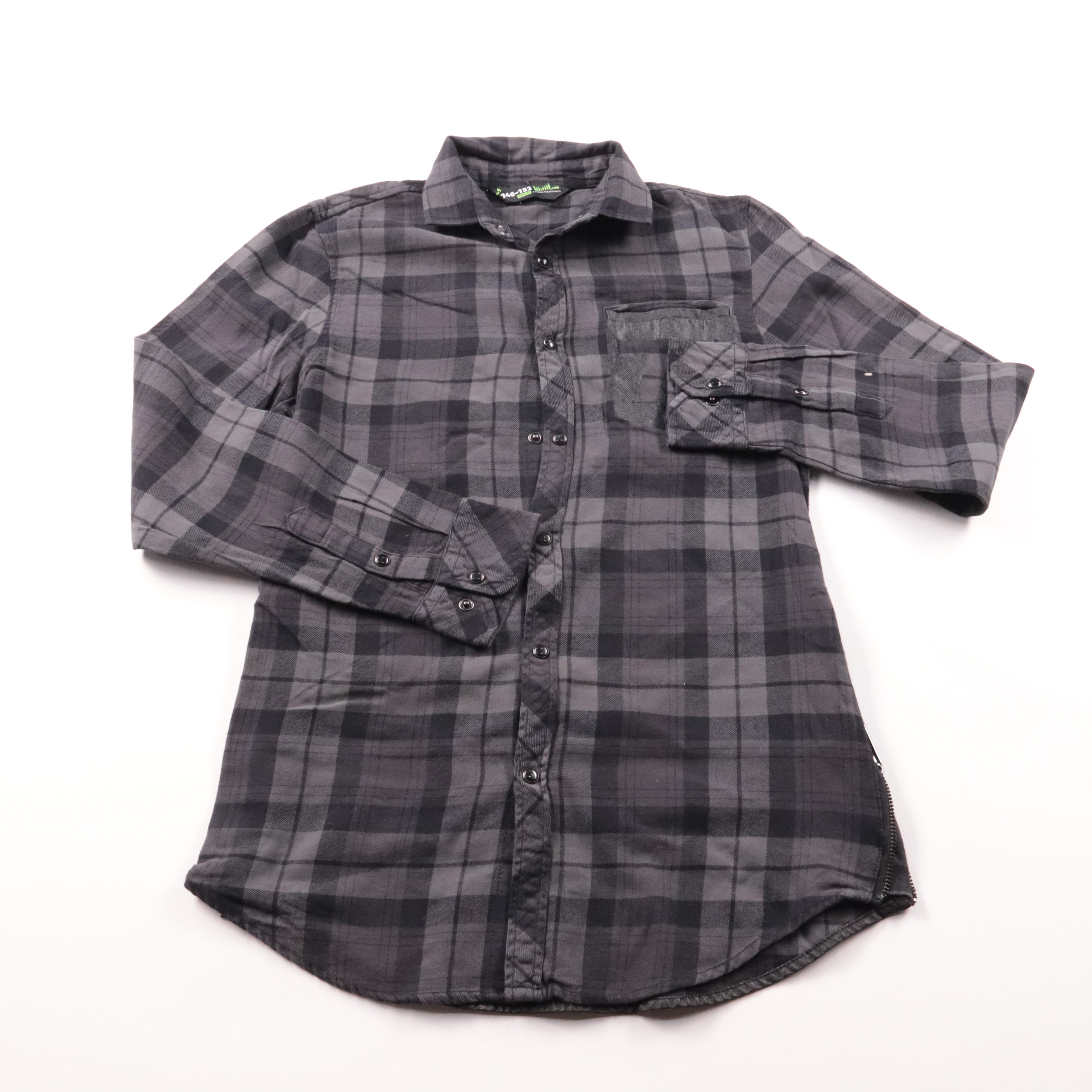 Рубашка Coolcat для мальчика в серо-чёрную клетку, с длинным рукавом и нагрудным карманом. Подойдёт для школы или прогулок в прохладную погоду, хорошо смотрится как самостоятельный слой или поверх футболки. Ткань плотная и практичная, не так быстро пач...