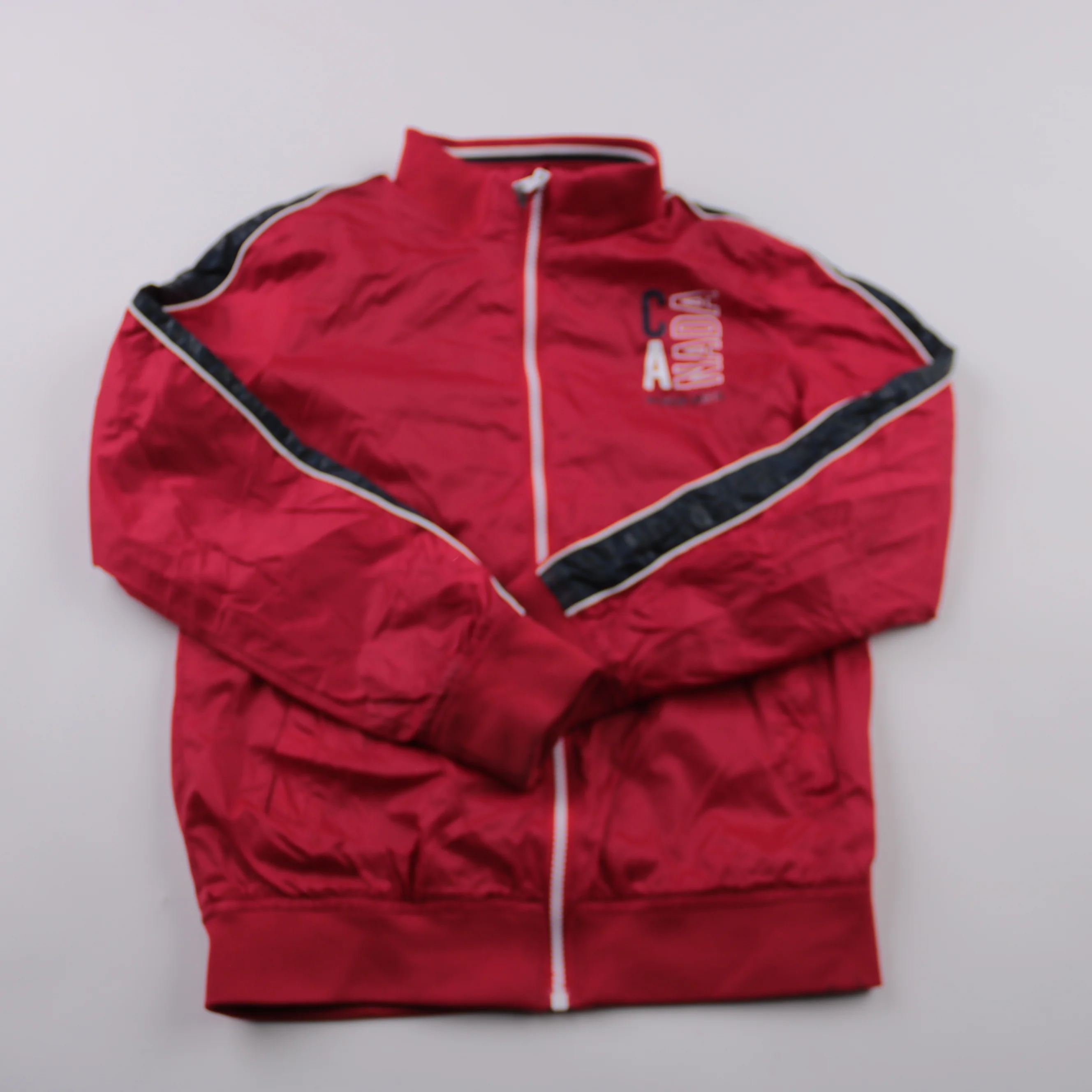 Куртка Earth для мальчика красного цвета на молнии, с воротником-стойкой и контрастными полосами на рукавах. Подойдёт для прогулок и активного отдыха в прохладную погоду. Практичный материал легко стирается и быстро сохнет.