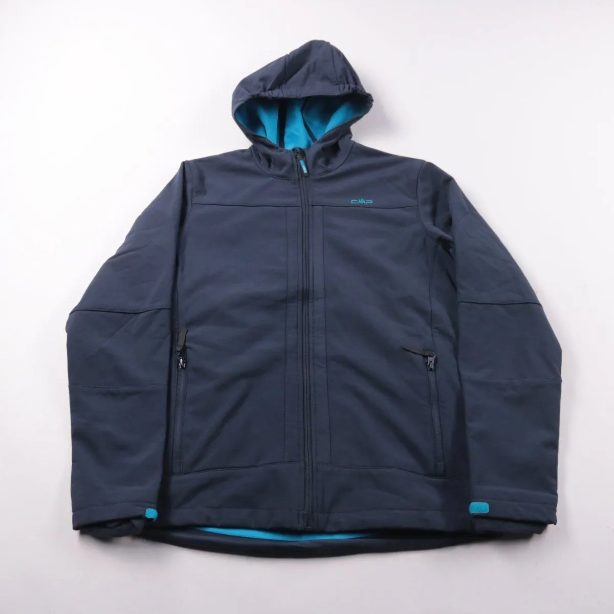 Куртка CMP тёмно-синего цвета с капюшоном и мягкой флисовой подкладкой. Подойдёт для прогулок и активных занятий в прохладную погоду весной и осенью. Практичный плюс — карманы на молниях и светоотражающий элемент сзади.