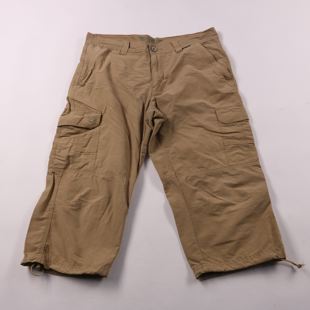 Мужские брюки-карго Hero by John Medoox песочного цвета, укороченные, с накладными карманами и утяжками по низу штанин. Подойдут для повседневной носки и поездок в тёплую погоду, когда нужны свободные движения и много карманов. Практичны тем, что плотн...