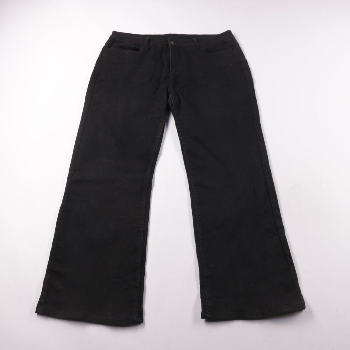 Мужские брюки, бренд не указан, чёрного цвета, слегка расклешённые книзу. Подойдут для повседневной носки и офиса, ткань с добавлением спандекса тянется и не сковывает движения. Практичны тем, что легко сочетаются с базовой одеждой и не маркие.