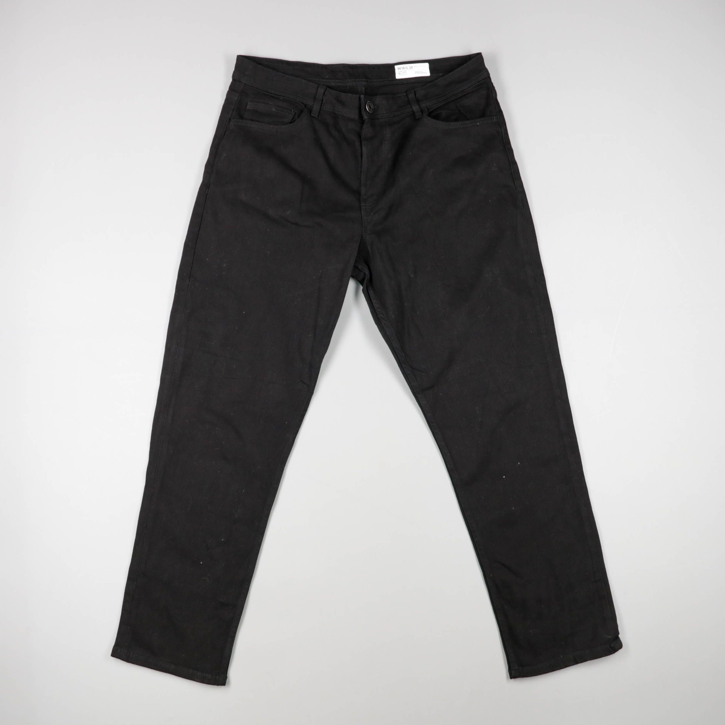 Мужские чёрные джинсы без видимого бренда, классическая 5-карманная посадка с ременными шлёвками и застёжкой на молнию. Подойдут для повседневной носки и городских образов в любое время года. Практичны тем, что нейтральный цвет легко сочетается с обувь...