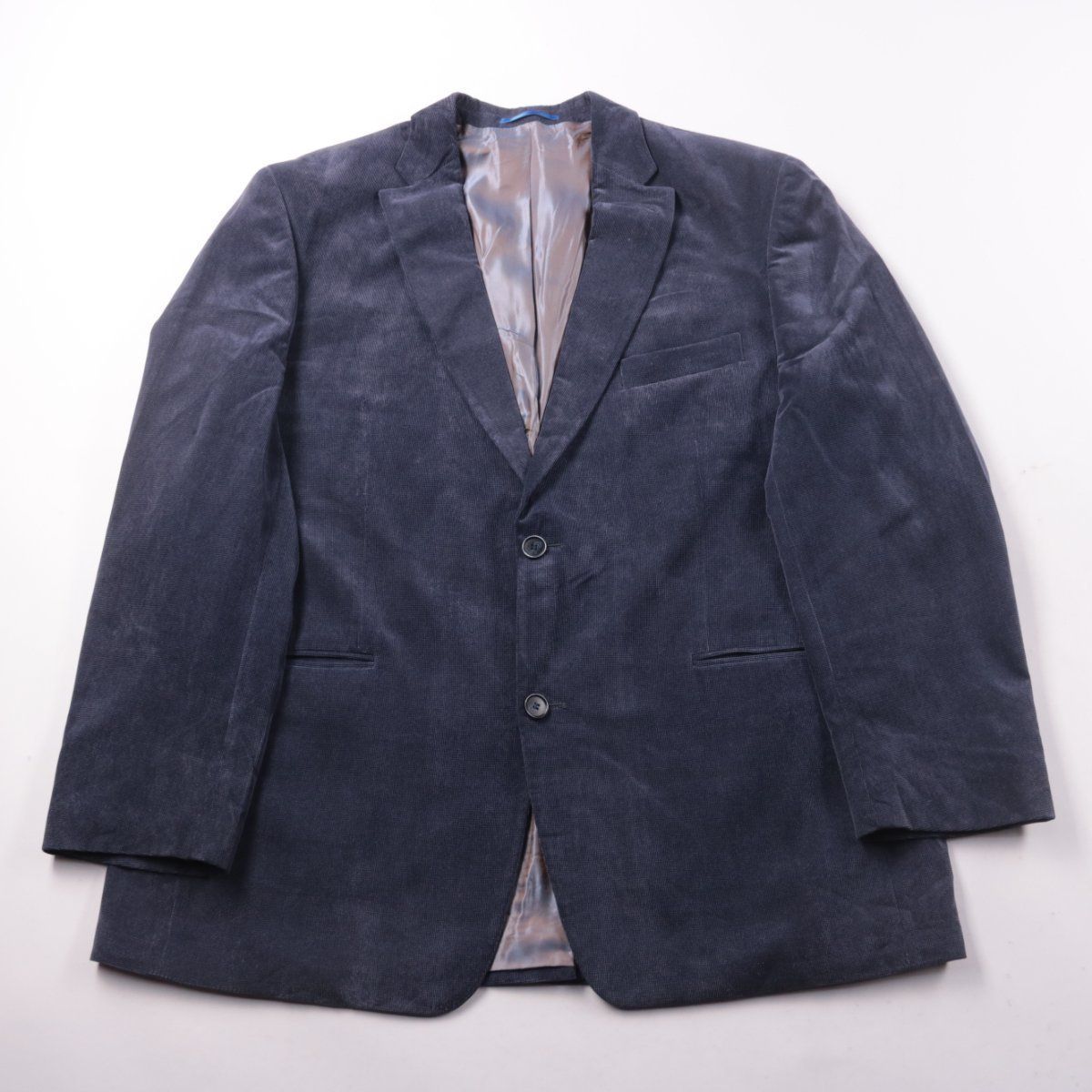 Мужской классический пиджак тёмно-синего цвета, однобортный на двух пуговицах с нагрудным и боковыми карманами. Подойдёт для офиса и мероприятий, легко сочетать с брюками и джинсами. Практичный синтетический верх хорошо держит форму и проще в уходе.