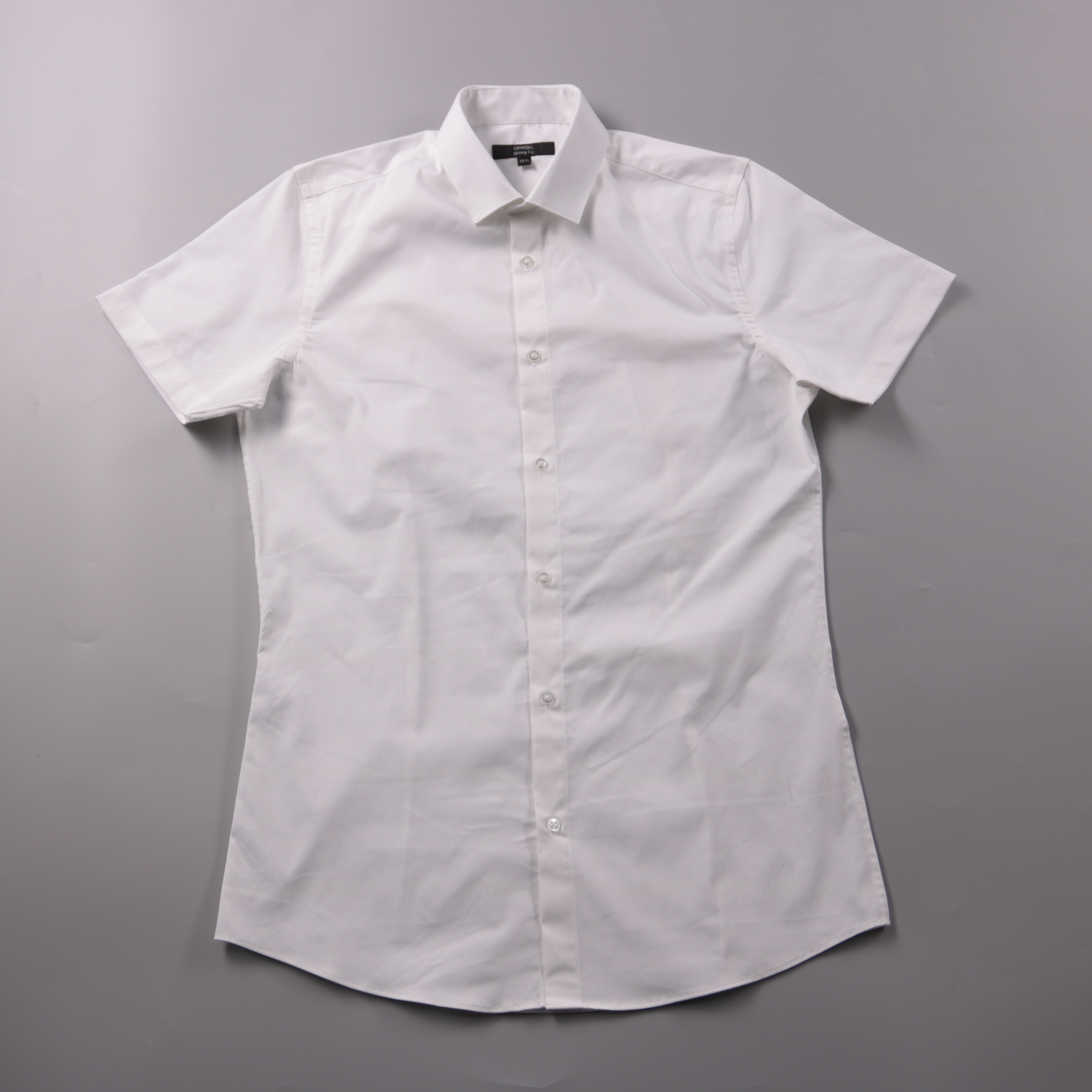 Мужская рубашка George Skinny Fit белого цвета с коротким рукавом и классическим воротником. Подойдёт для офиса, школы или торжественных случаев, легко сочетается с брюками и джинсами. Материал с добавлением эластана меньше мнётся и комфортнее сидит по...