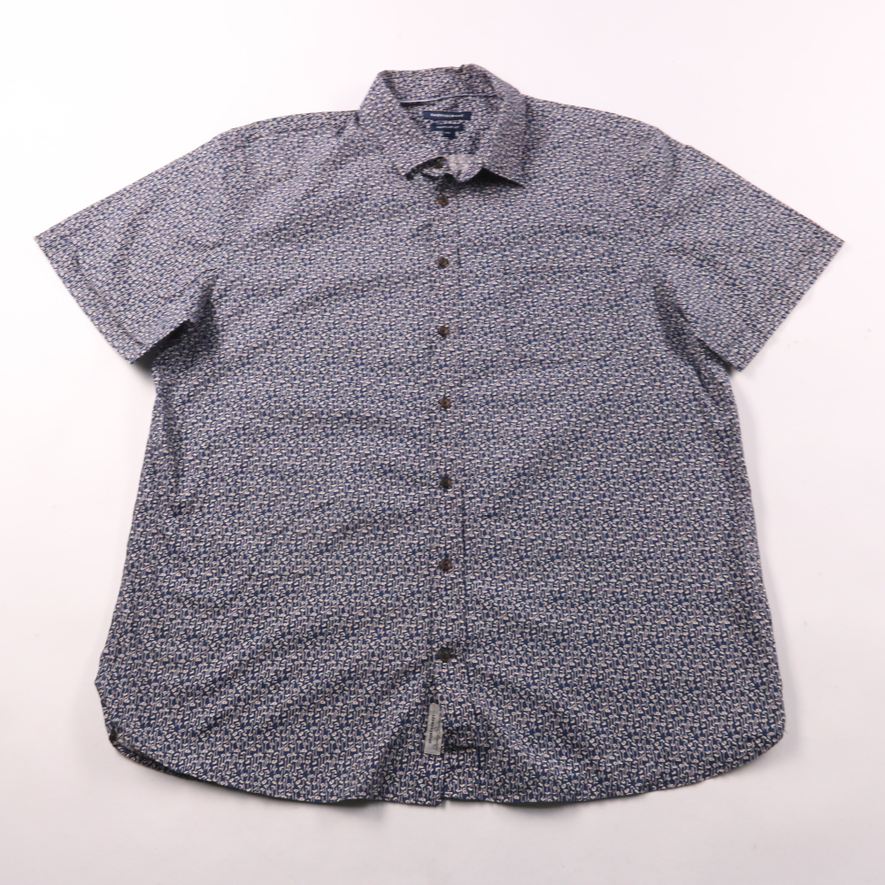 Мужская рубашка Sportscraft regular fit с коротким рукавом и мелким принтом в сине-белой гамме. Подойдёт для лета и повседневных образов с джинсами или чиносами. Натуральный хлопок хорошо дышит и комфортен в жару.