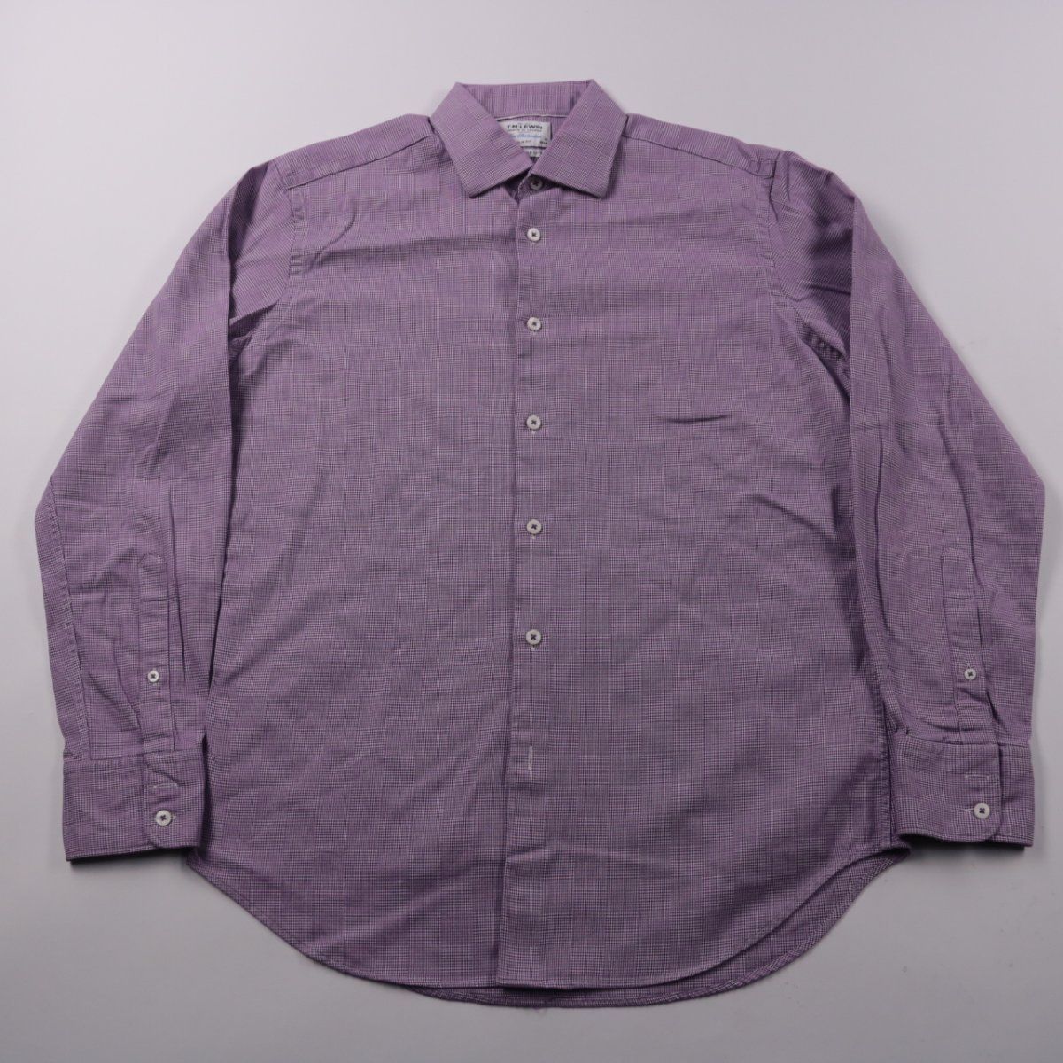 Мужская рубашка T.M.Lewin Slim Fit из хлопка, в мелкую клетку фиолетового оттенка, с длинным рукавом и классическим воротником. Подойдёт для офиса и повседневных образов с брюками или джинсами. Хлопок хорошо дышит и комфортен в течение дня.