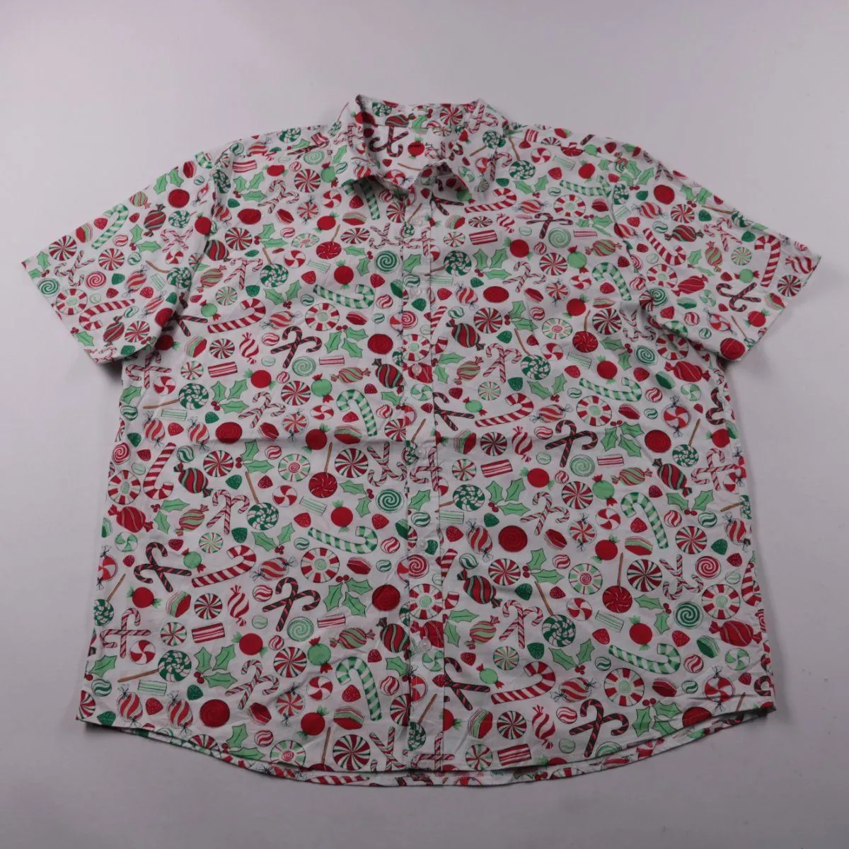 Мужская рубашка Anko с коротким рукавом и ярким принтом в новогодней тематике. Подойдёт для лета и тематических вечеринок или повседневных образов. Натуральный хлопок хорошо пропускает воздух и комфортен в носке.