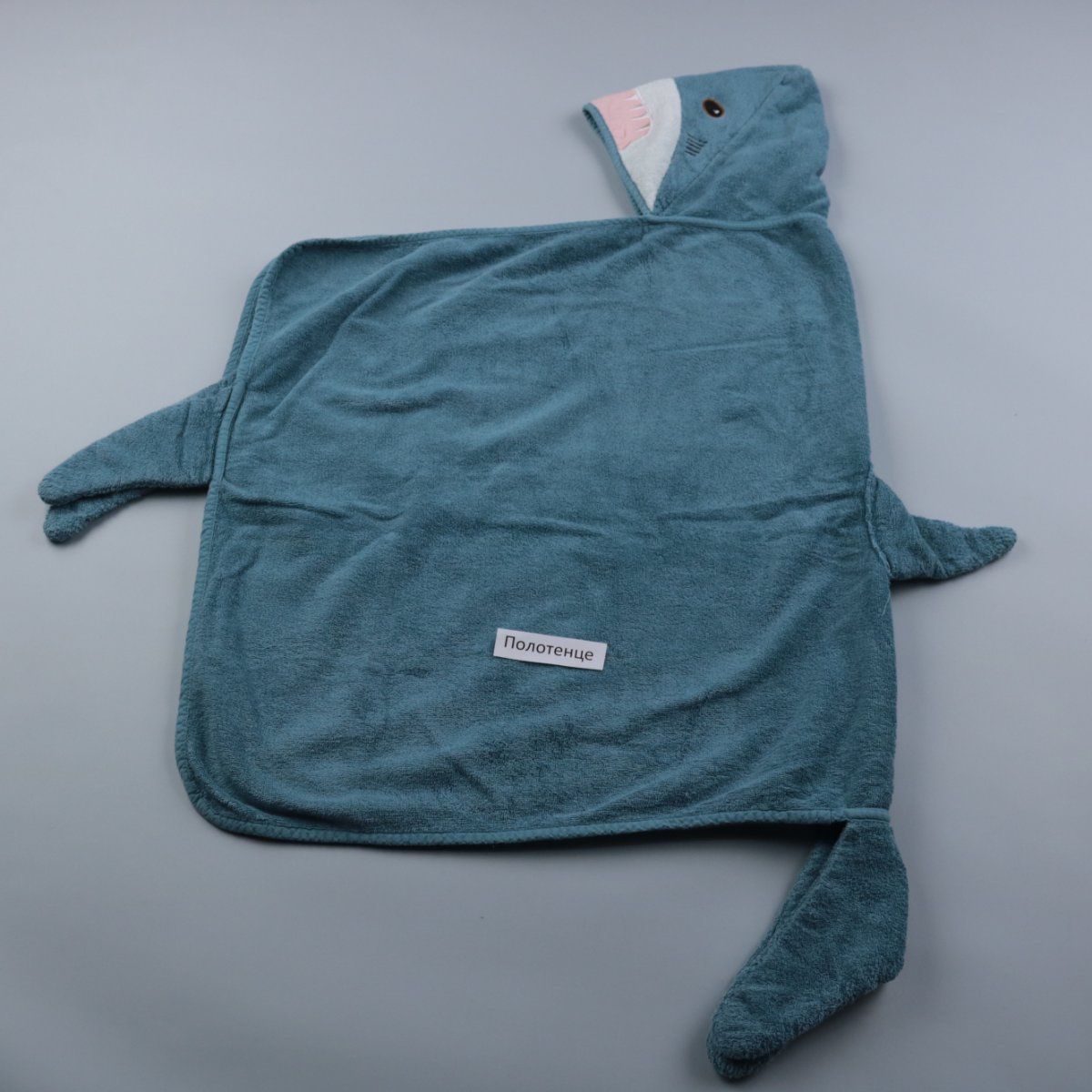 Полотенце-пончо с капюшоном в виде акулы, мягкое и приятное на ощупь. Подойдет для пляжа, бассейна или после душа, удобно укутывает и быстро согревает. Капюшон помогает быстрее подсушить голову и защищает от сквозняка.