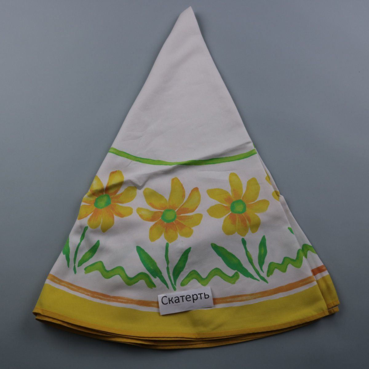 Скатерть Nova Ambiente с ярким цветочным принтом в жёлто-зелёных тонах для кухни или дачи. Подойдёт для повседневной сервировки и летних посиделок, добавляет акцент на столе. Практична в уходе за счёт смеси хлопка и полиэстера.