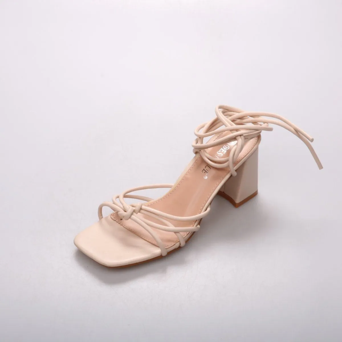 Босоножки Bestelle в бежевом цвете на устойчивом каблуке и с завязками вокруг щиколотки. Подойдут для летних прогулок и выходов, хорошо смотрятся с платьями и брюками с открытой щиколоткой. Квадратный нос и широкий каблук делают модель более удобной и устойчивой при ходьбе.