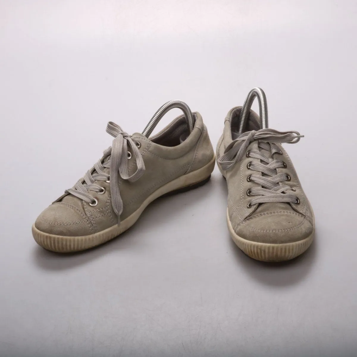 Кеды Legero из серой замши на шнуровке с низким силуэтом. Подойдут для повседневной носки в городе в тёплую весну/осень и прохладное лето. Гибкая резиновая подошва делает их удобными для длительной ходьбы.
