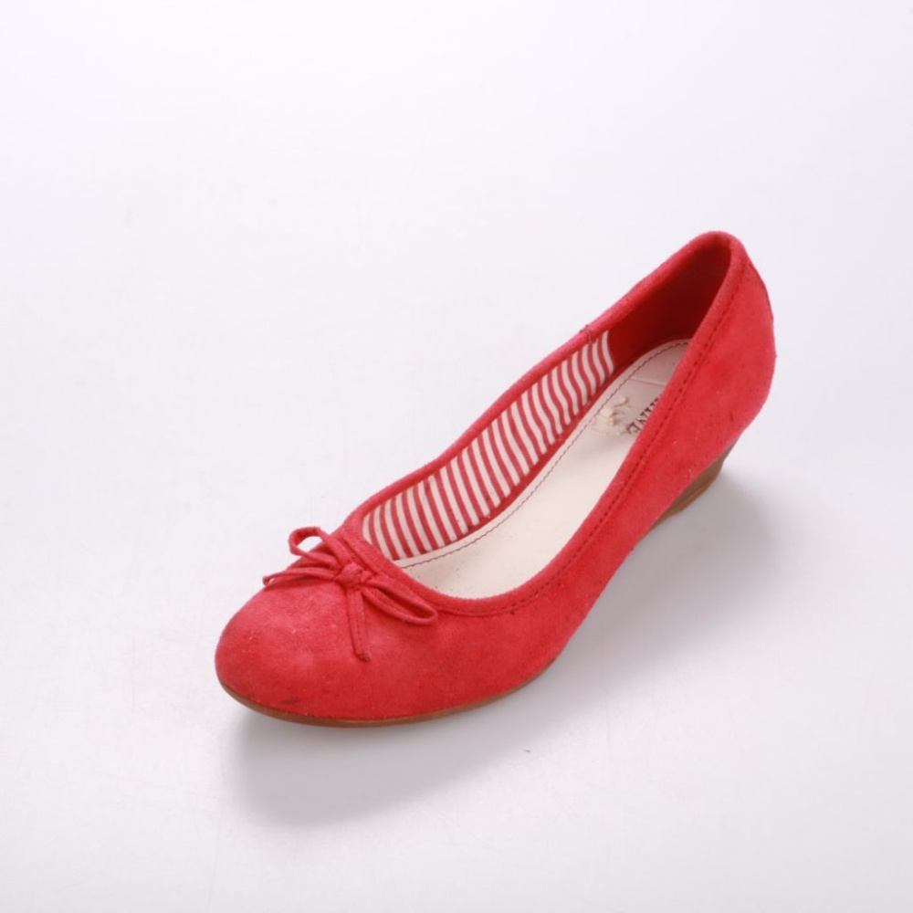 Женские туфли Ariane из красной замши с небольшим устойчивым каблуком и бантиком на мысе. Подойдут для повседневных образов и офиса, когда нужен аккуратный силуэт без высокого каблука. Удобная колодка и устойчивый каблук делают их практичными для длите...