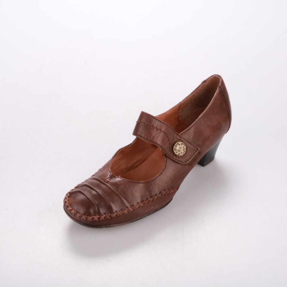 Женские кожаные туфли Medicus коричневого цвета с ремешком и небольшим устойчивым каблуком. Подойдут для офиса и повседневной носки в демисезон, хорошо сочетаются с брюками и платьями. Практичная подошва с рельефом даёт более уверенное сцепление при хо...