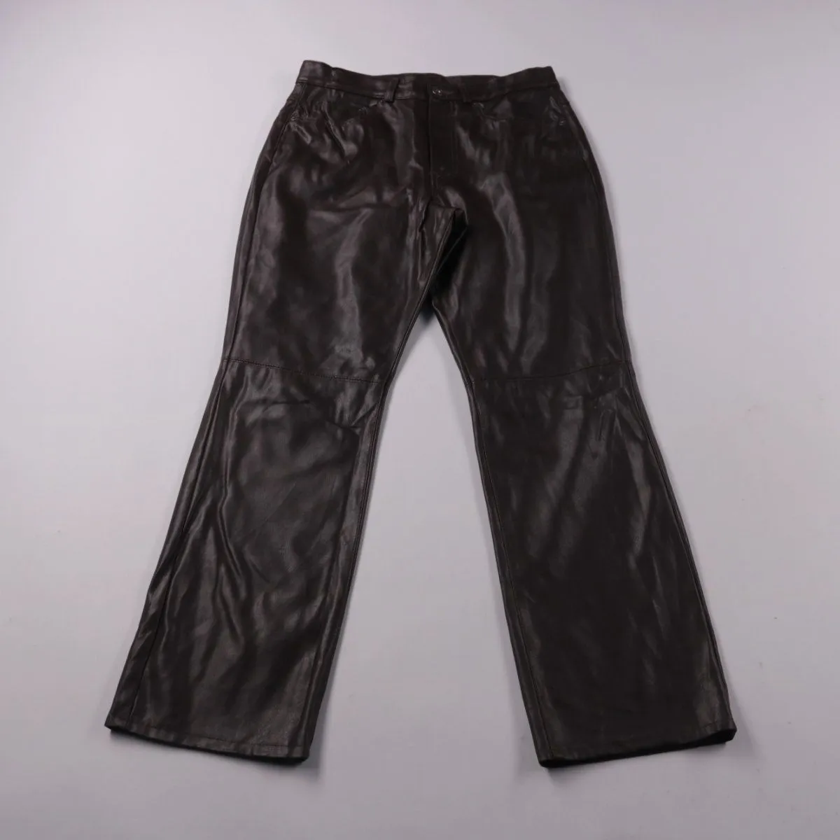 Женские брюки Marks & Spencer из материала под кожу, цвет чёрный, прямой крой. Подойдут для повседневных образов в прохладную погоду и на выход с обувью на каблуке или ботильонами. Практичное преимущество — плотный верхний слой легко протирается от загрязнений.
