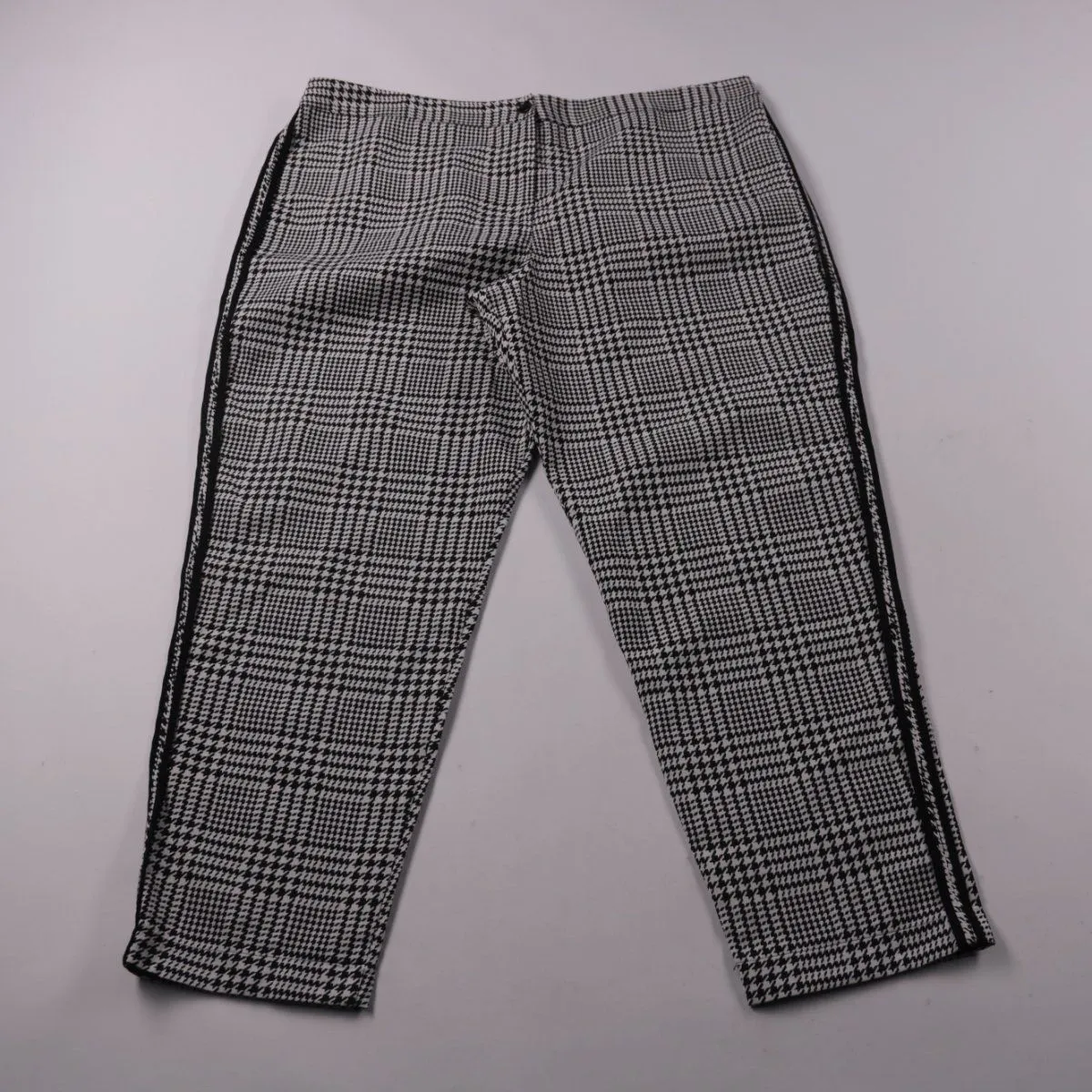 Женские брюки Tu с черно-белым клетчатым принтом и боковыми лампасами. Подойдут для офиса и повседневных образов в прохладную погоду. Ткань с добавлением эластана даёт более комфортную посадку.