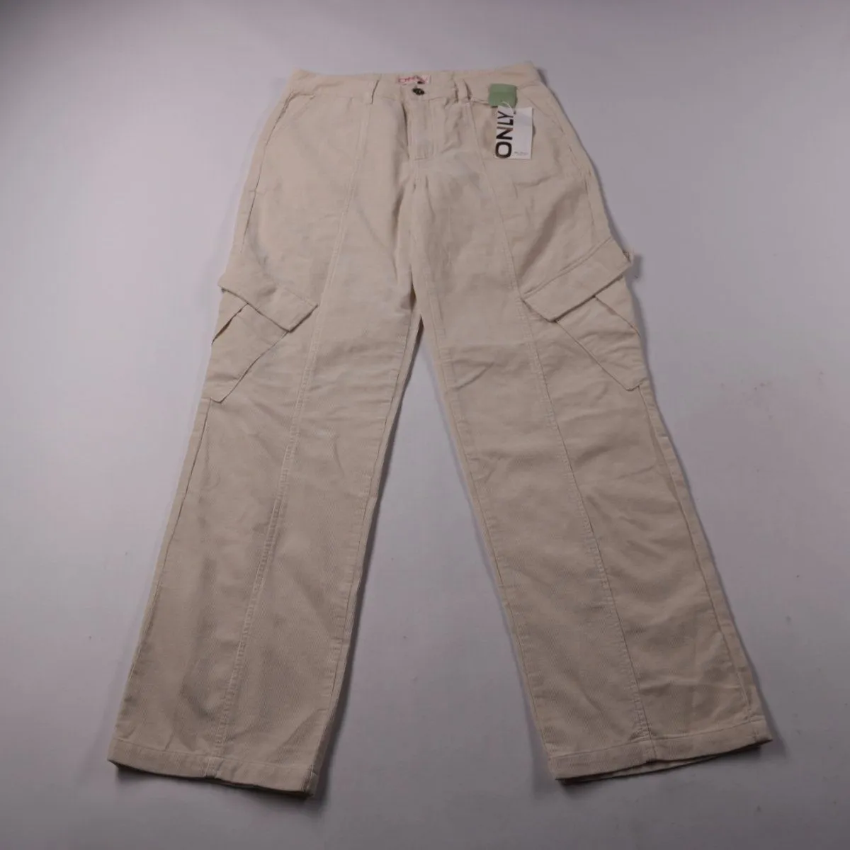 Женские брюки-карго ONLY светлого оттенка Whitecap Gray с накладными боковыми карманами. Подойдут для повседневных образов и прогулок в тёплое и прохладное время года. Плотный хлопок хорошо держит форму и комфортен в носке.
