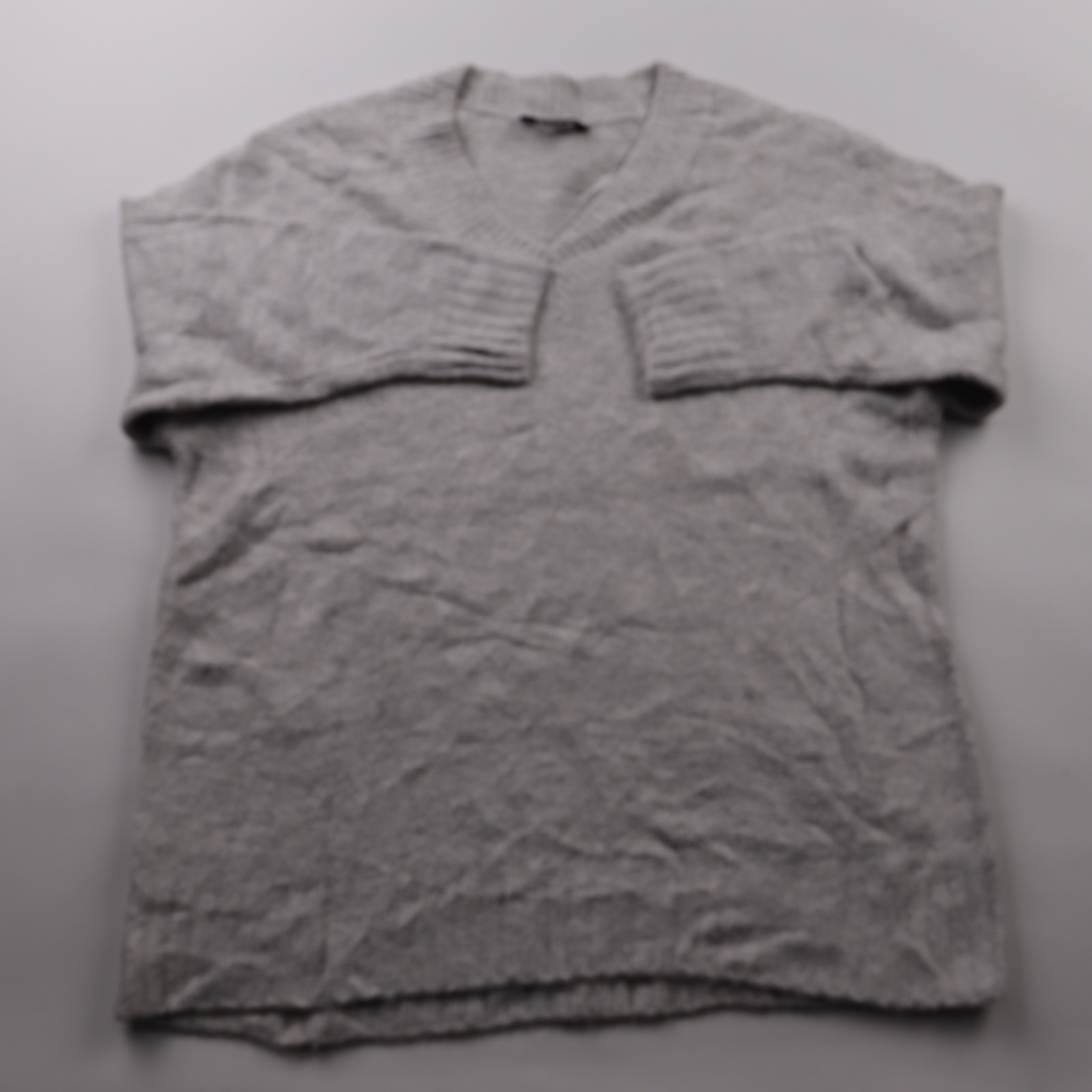 Серый свитер F&F с V-образным вырезом и мягкой фактурной вязкой. Подойдёт для повседневных образов и офиса в прохладную погоду, удобно носить как слой под жакет или пальто. Практичен в уходе и хорошо сохраняет тепло.