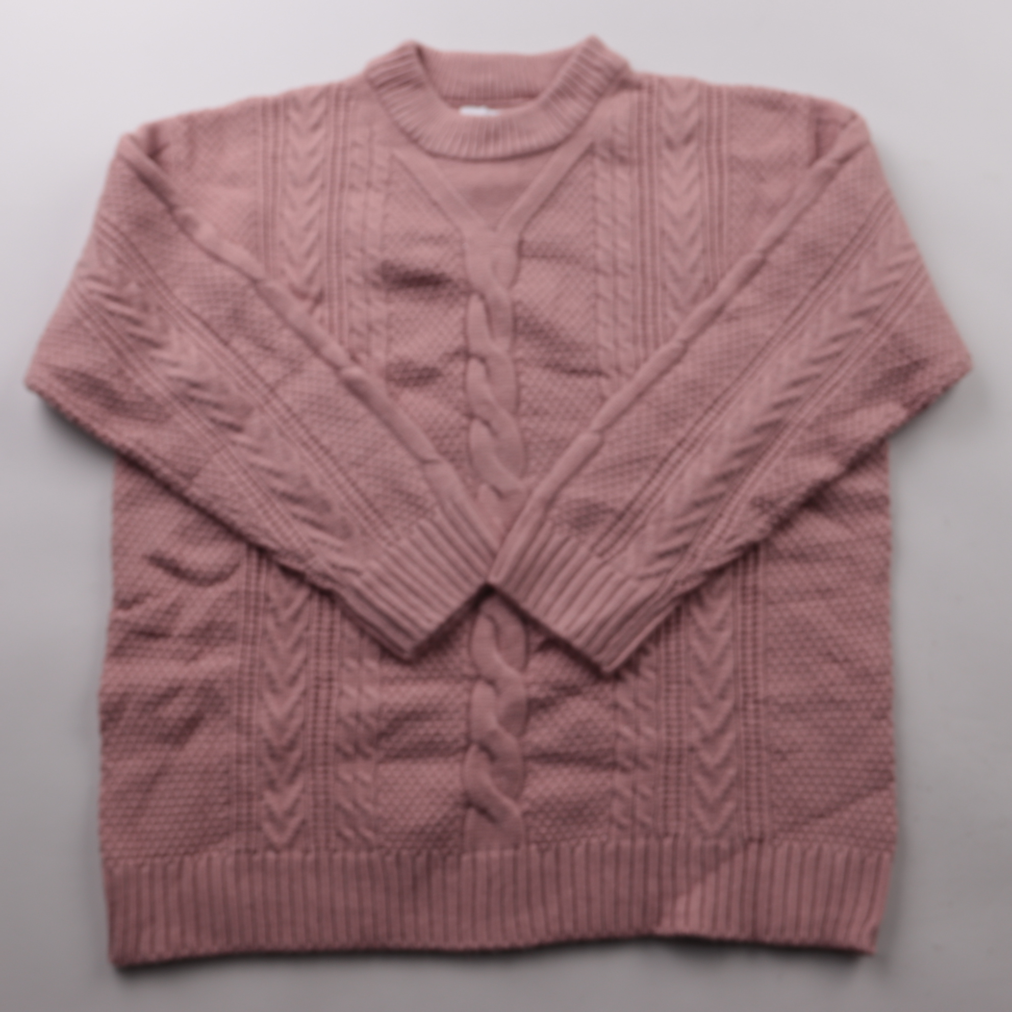 Вязаный джемпер Next пыльно-розового цвета с фактурным узором «косы» и круглым воротом. Подойдёт для повседневных образов в прохладную погоду, хорошо сочетается с джинсами и юбками. Мягкий трикотаж и эластичные манжеты делают посадку комфортной.