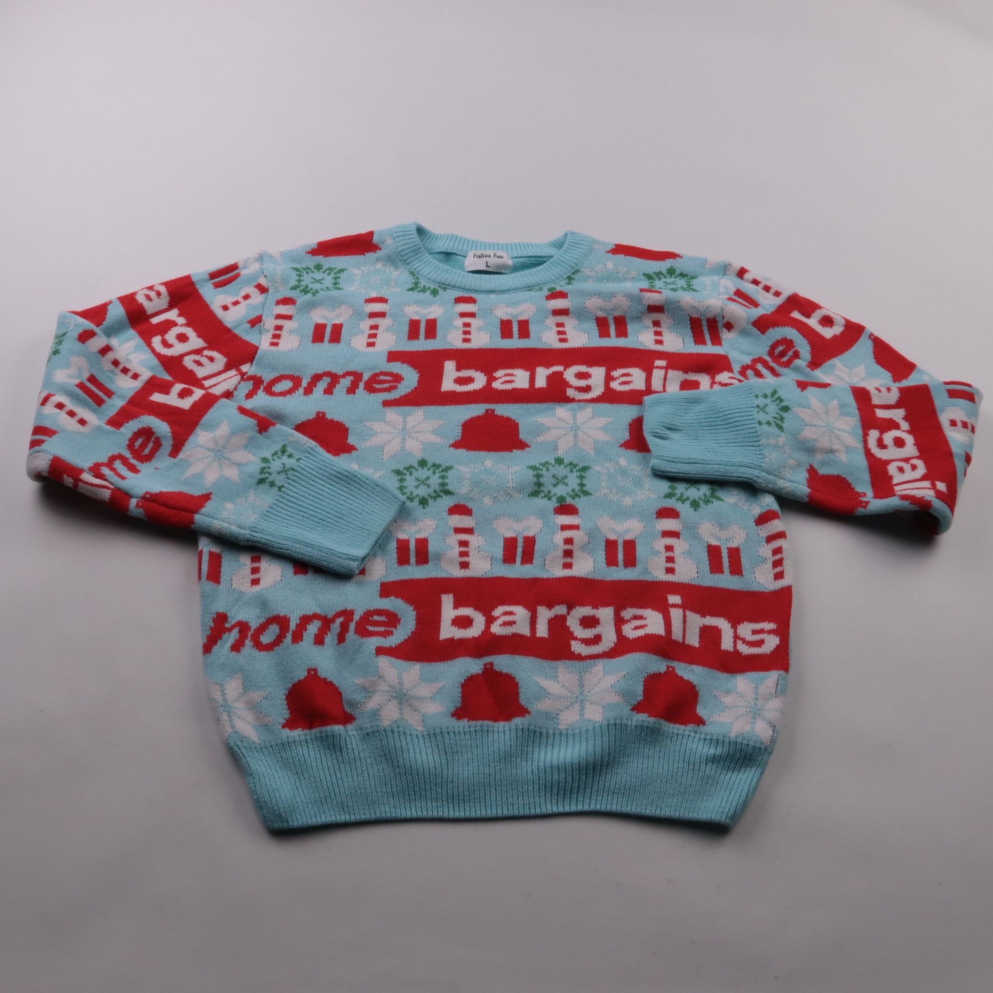 Вязаный свитер Festive Fun с ярким новогодним жаккардовым рисунком и надписью «home bargains». Подойдёт для зимних прогулок, вечеринок и тематических фотосессий. Практичный плюс — мягкий акрил, который легко стирается и быстро сохнет.