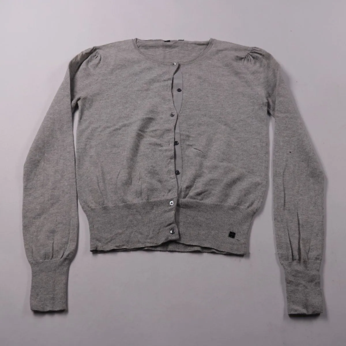 Серый кардиган Savida на пуговицах с длинным рукавом и манжетами. Подойдёт для повседневных и офисных образов в прохладную погоду, удобно носить поверх топа или рубашки. Смесь хлопка и шерсти даёт мягкость и сохраняет тепло.