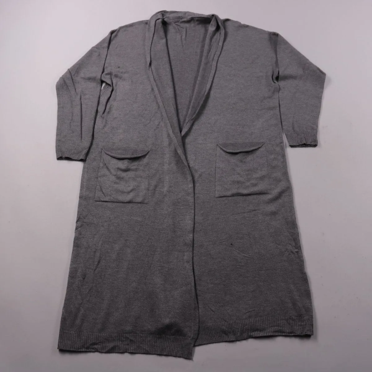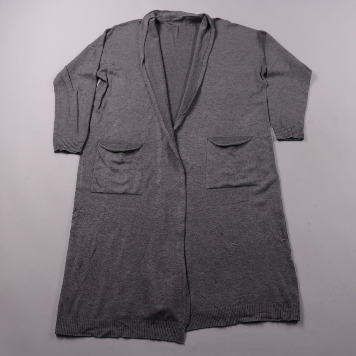 Длинный трикотажный кардиган без застёжки, с накладными карманами. Подойдёт для повседневных образов и многослойных комплектов в прохладную погоду. Практичен тем, что легко сочетается с базовыми вещами и удобен как накидка.