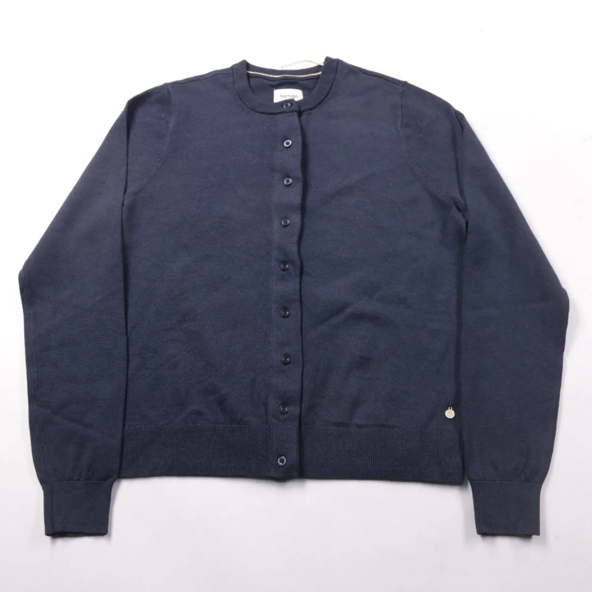 Кардиган Bamigo тёмно-синего цвета на пуговицах с круглым вырезом. Подойдёт для офиса и повседневных образов, удобно носить как второй слой. Состав с бамбуковой вискозой и хлопком хорошо дышит и комфортен в помещении.