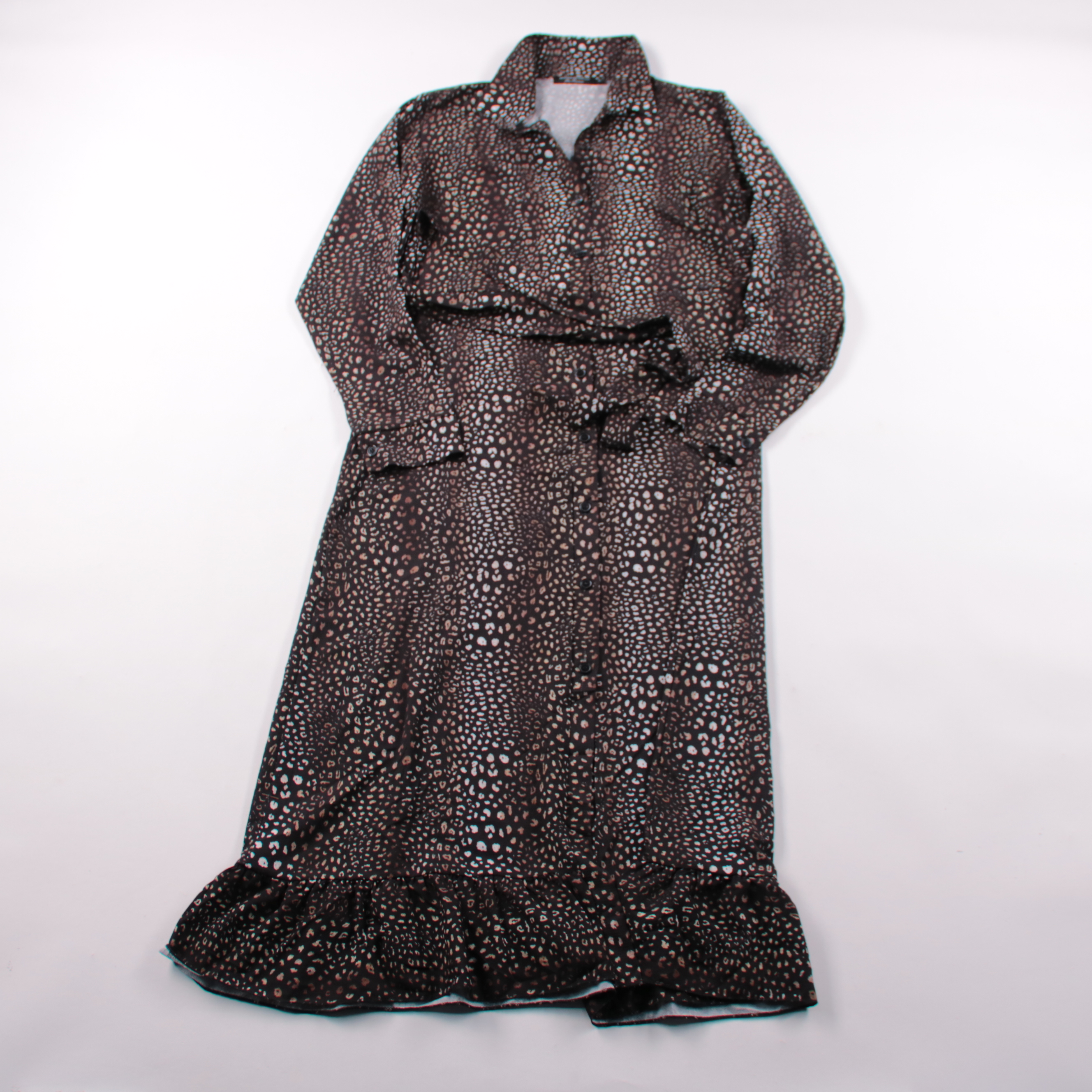 Повседневное платье-рубашка Musthaves by Elja с длинным рукавом, поясом и пуговицами по всей длине. Подойдёт для офиса и прогулок, легко сочетается с ботинками или кедами. Пояс помогает подчеркнуть талию и удобно регулировать посадку.