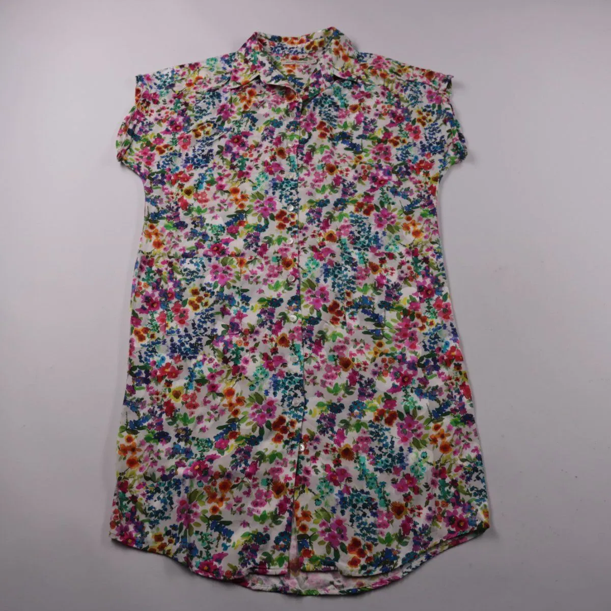 Повседневное платье-рубашка Nathalie Vleeschouwer с коротким рукавом, отложным воротником и застёжкой на пуговицы по всей длине. Яркий цветочный принт подойдёт для летних прогулок и отпуска. Лёгкая ткань хорошо дышит и удобно носится в жару.