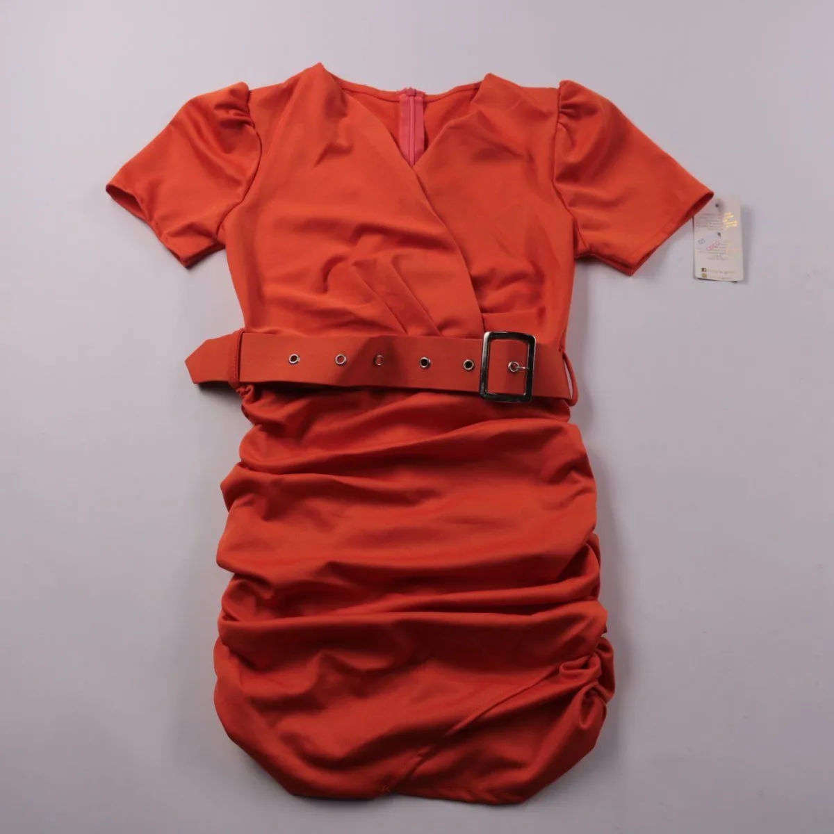 Платье COCO с запахом и V-образным вырезом, короткими рукавами-фонариками и поясом с пряжкой. Подойдёт для прогулок и встреч, складки/драпировка по юбке подчёркивают силуэт. Ткань с добавлением эластана тянется и комфортно садится по фигуре.