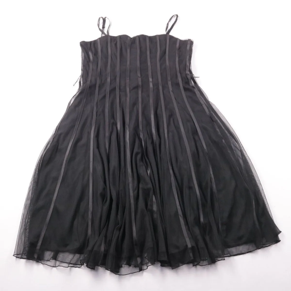 Женское платье Envy на тонких бретелях, чёрного цвета, с плиссированной полупрозрачной юбкой. Подойдёт для вечерних выходов и мероприятий в тёплую погоду, легко сочетается с каблуками и жакетом. Материал с добавлением спандекса немного тянется и комфортно садится по фигуре.