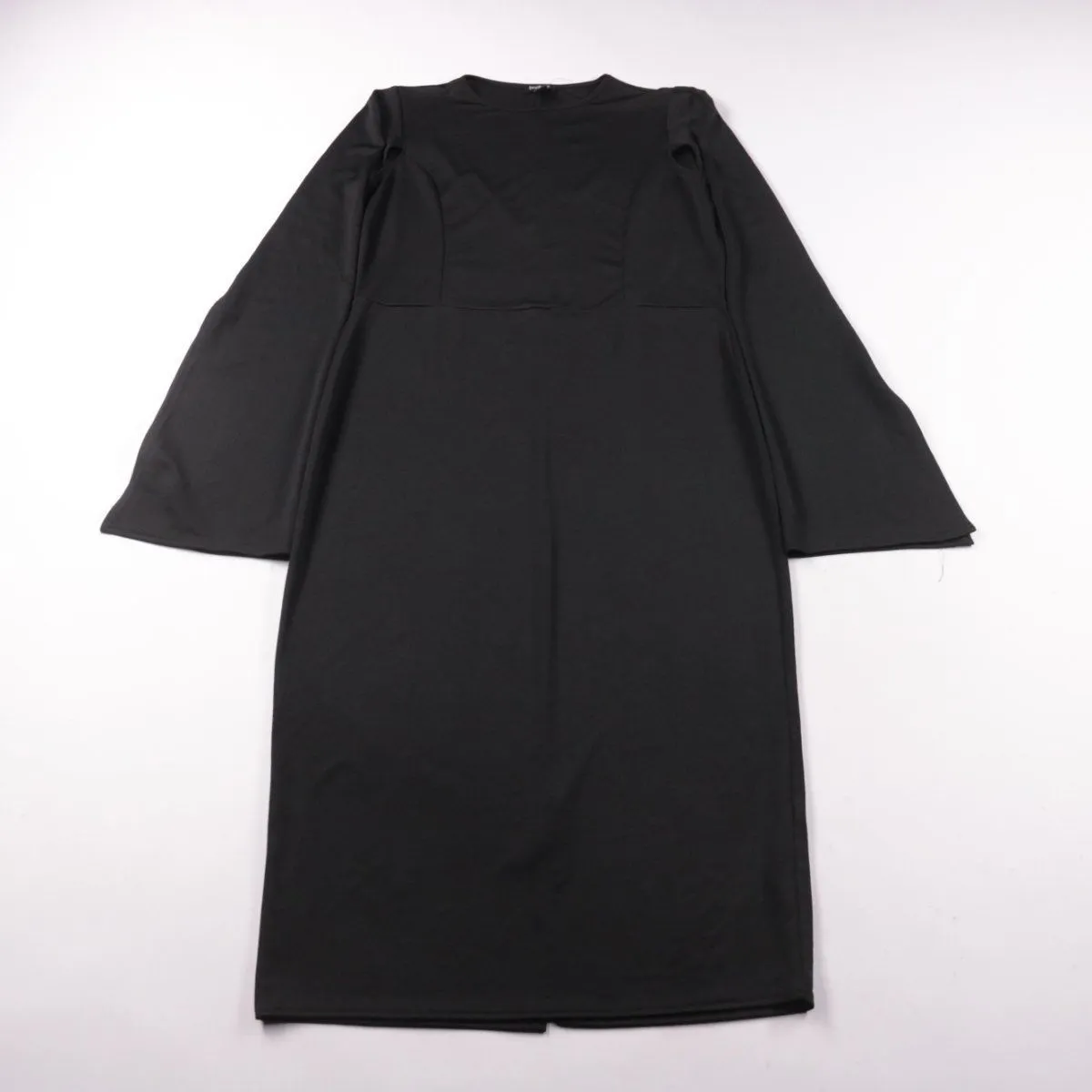 Чёрное платье Boohoo прямого кроя с длинными рукавами и лаконичным вырезом. Подойдёт для офиса, повседневных выходов и вечерних образов с аксессуарами. Плотная эластичная ткань держит форму и комфортно садится по фигуре.