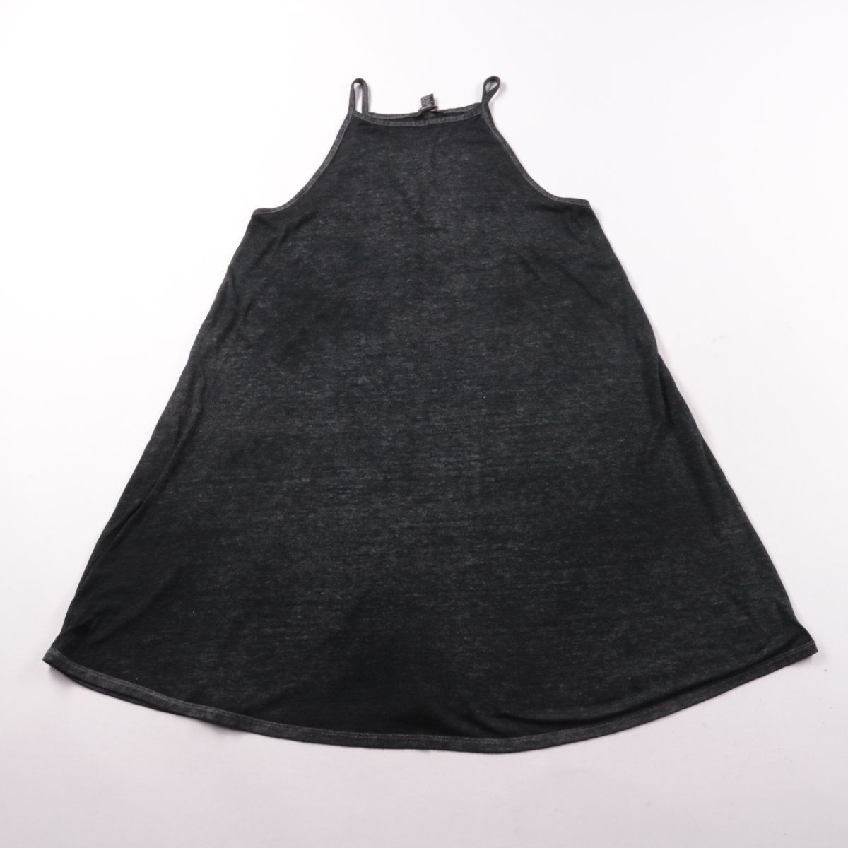 Повседневное платье-сарафан Forever 21 тёмно-серого меланжевого цвета, свободного А-силуэта с тонкими бретелями и высоким вырезом. Подойдёт для лета, отпуска и прогулок, удобно сочетать с кедами или сандалиями. Практичный плюс — лёгкий трикотаж и не сковывает движения.