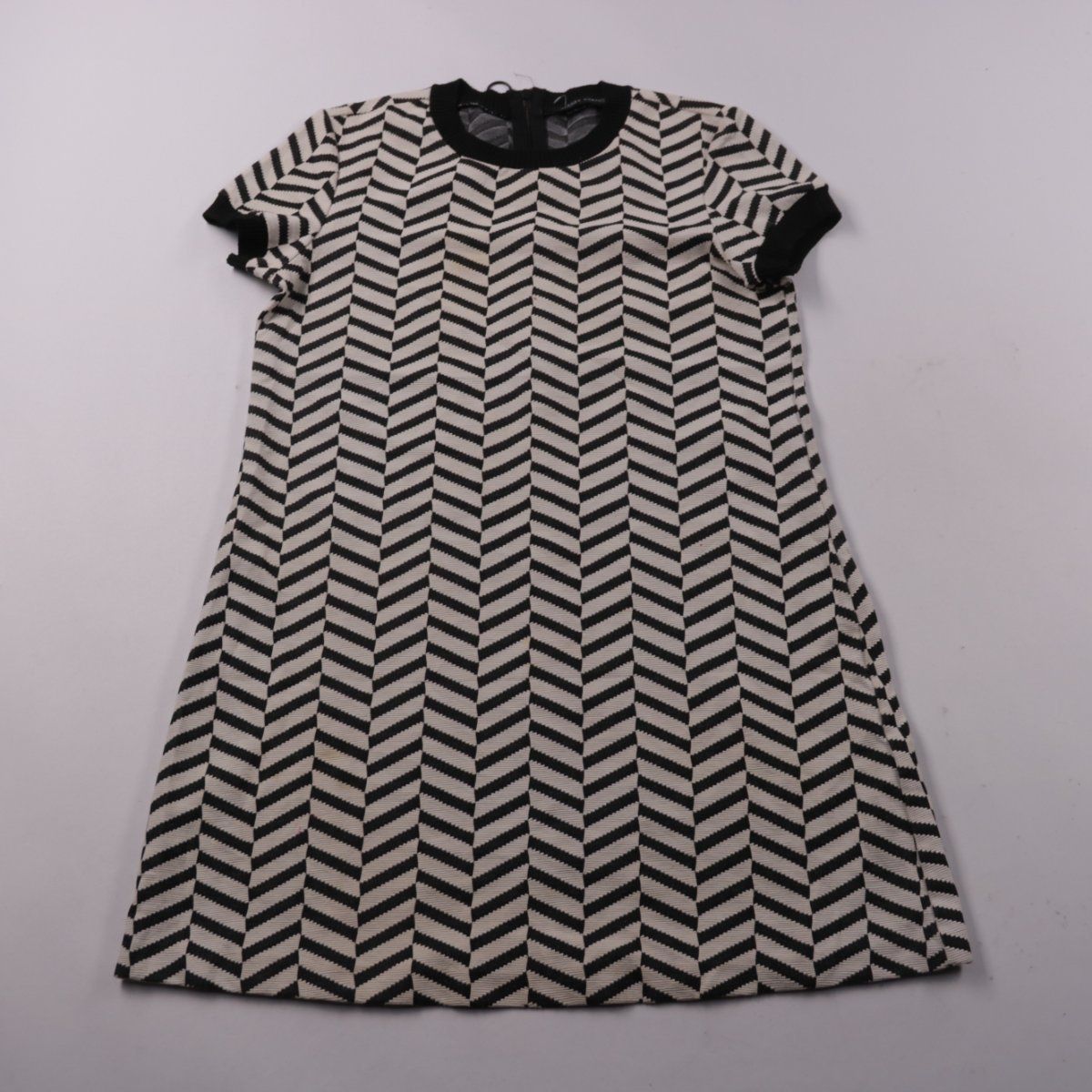 Повседневное платье Zara Woman из плотного трикотажа с чёрно-белым геометрическим узором и коротким рукавом. Подойдёт для офиса и на каждый день, хорошо смотрится с ботильонами или кедами. Материал держит форму и меньше мнётся.