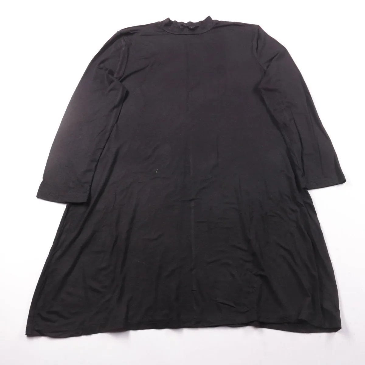 Повседневное платье Peacocks чёрного цвета с длинными рукавами и воротником-стойкой. Подойдёт для офиса и на каждый день, хорошо смотрится с ботинками или кедами. Ткань эластичная, за счёт чего платье комфортно садится по фигуре.