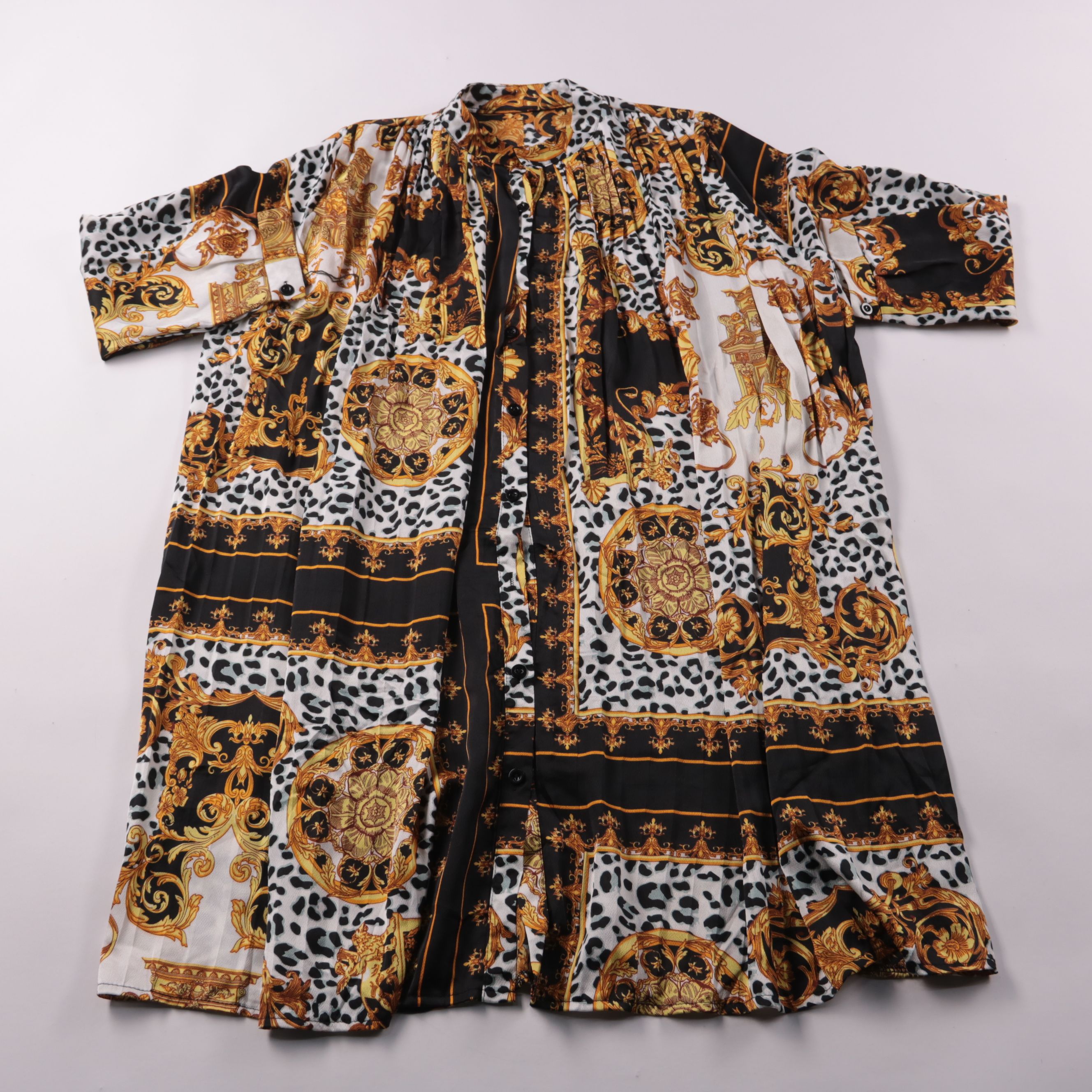Женская рубашка с ярким принтом в стиле барокко с леопардовыми вставками, без указания бренда. Подойдёт для повседневных образов и для выхода, когда хочется сделать акцент на верхе. Лёгкая ткань и застёжка на пуговицы позволяют удобно носить как самост...