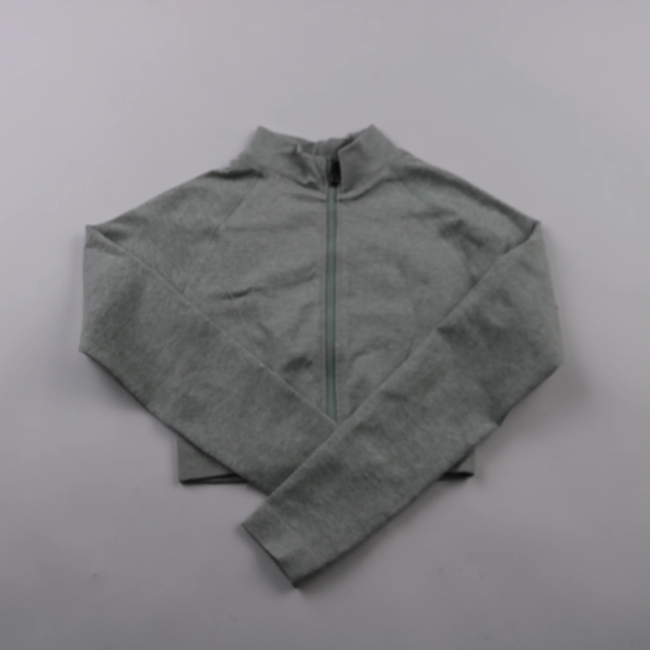 Укороченная кофта на молнии с воротником-стойкой в сером цвете. Подойдёт для тренировок, прогулок и повседневных образов в качестве лёгкого верхнего слоя. Эластичный материал хорошо тянется и быстро сохнет.
