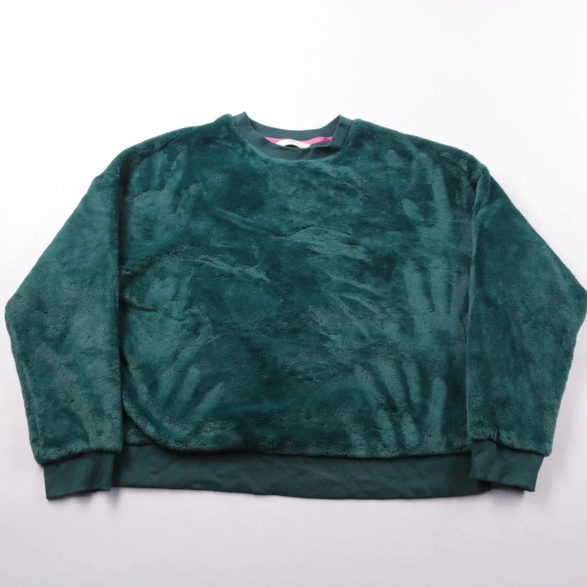 Женский свитшот M&S из мягкого плюшевого/флисового материала тёмно-зелёного цвета, без капюшона. Подойдёт для дома, прогулок и уютных повседневных образов в прохладную погоду. Материал приятный к телу и хорошо сохраняет тепло.