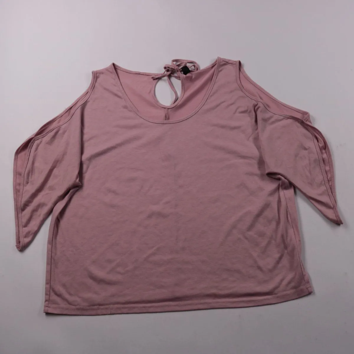 Женский лонгслив Shein пыльно-розового цвета с открытыми плечами и завязкой у горловины (вырез-капля сзади). Подойдёт для повседневных образов и прогулок в тёплую весну/осень или в помещении. Тянущийся материал хорошо садится по фигуре и не сковывает движения.