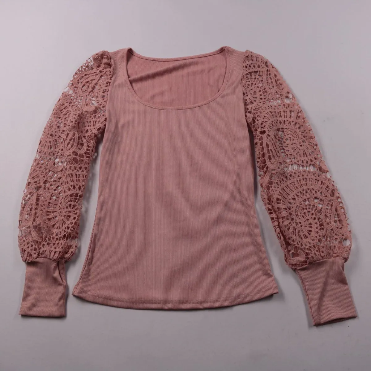 Женский лонгслив в пыльно-розовом цвете, с фактурной трикотажной основой и кружевными рукавами. Подойдёт для повседневных образов и на выход, хорошо смотрится с джинсами и юбками. Практичное преимущество — эластичный материал комфортно садится по фигуре.
