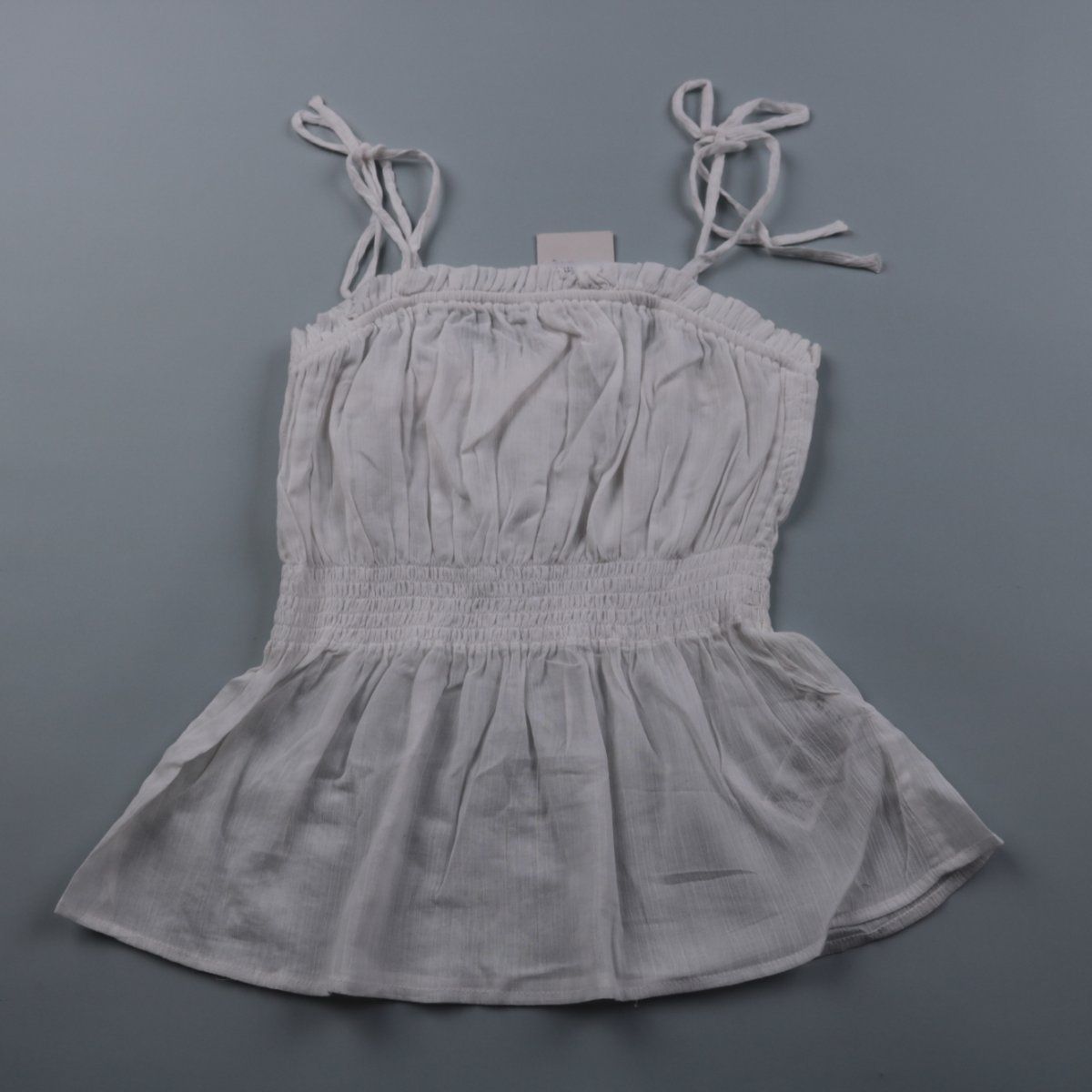 Лёгкий белый сарафан NA-KD на завязках с присборенным лифом и эластичной талией. Подойдёт для летних прогулок и отпуска, можно носить с сандалиями или кедами. Хлопковая ткань хорошо пропускает воздух и комфортна в жару.